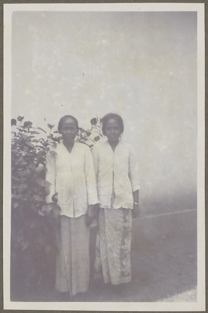 Portret van twwe Javaanse vrouwen in de tuin nabij P...
