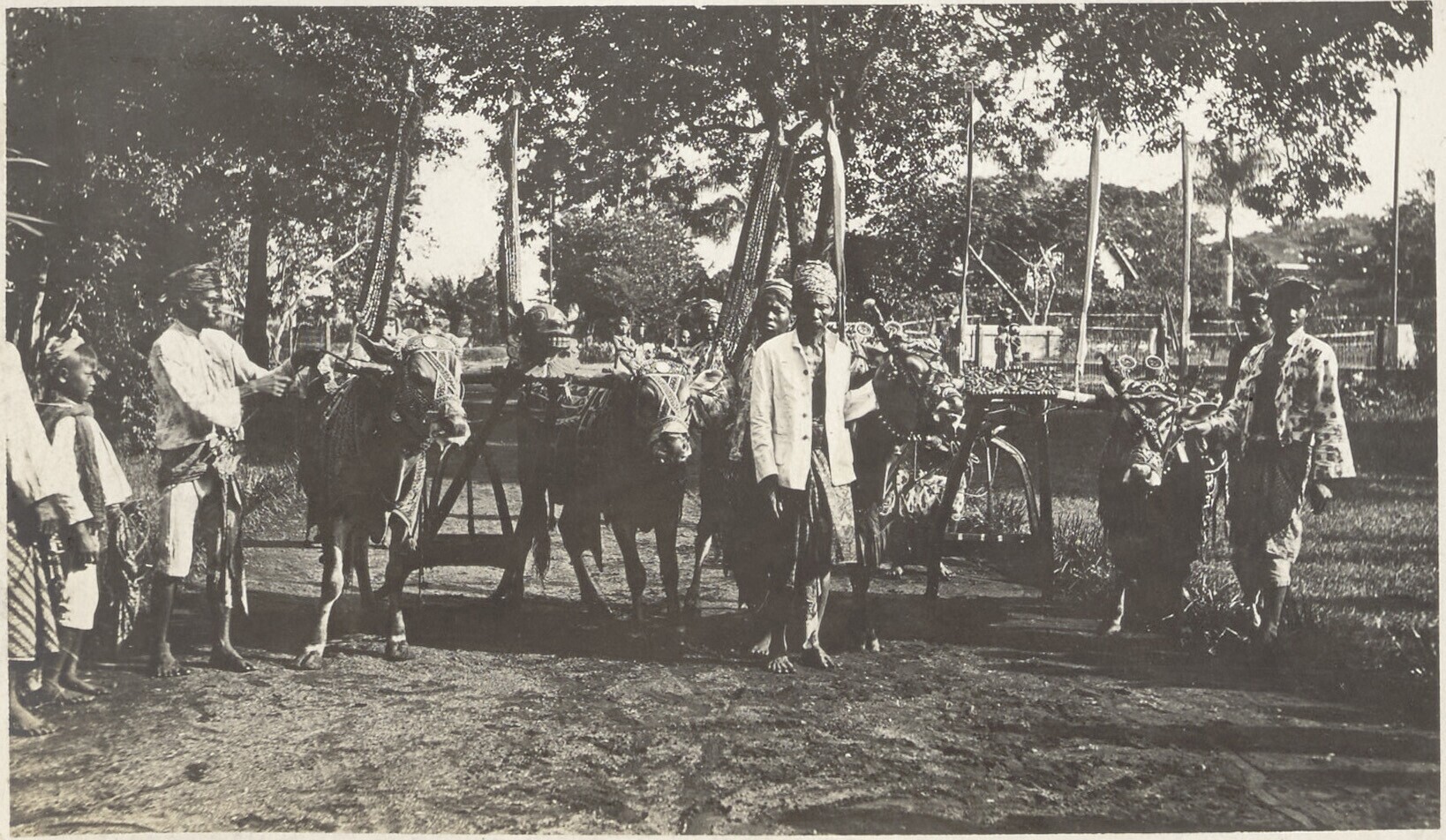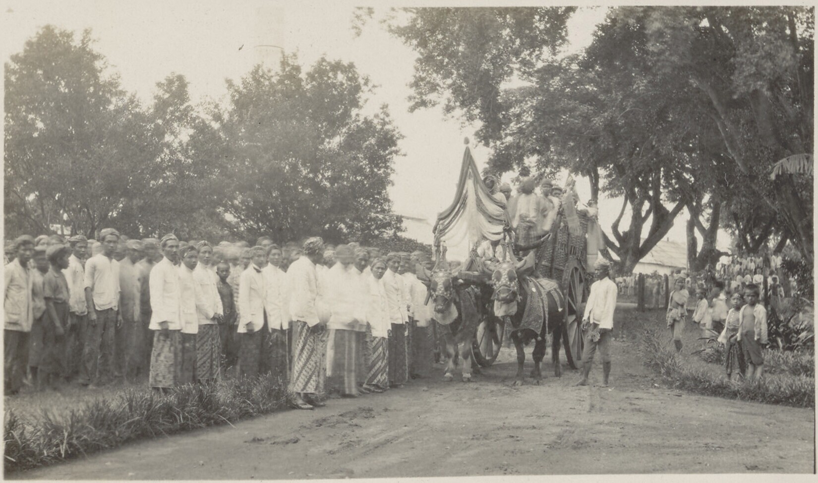 Versierde ossenkar in een optocht op de suikerondern...