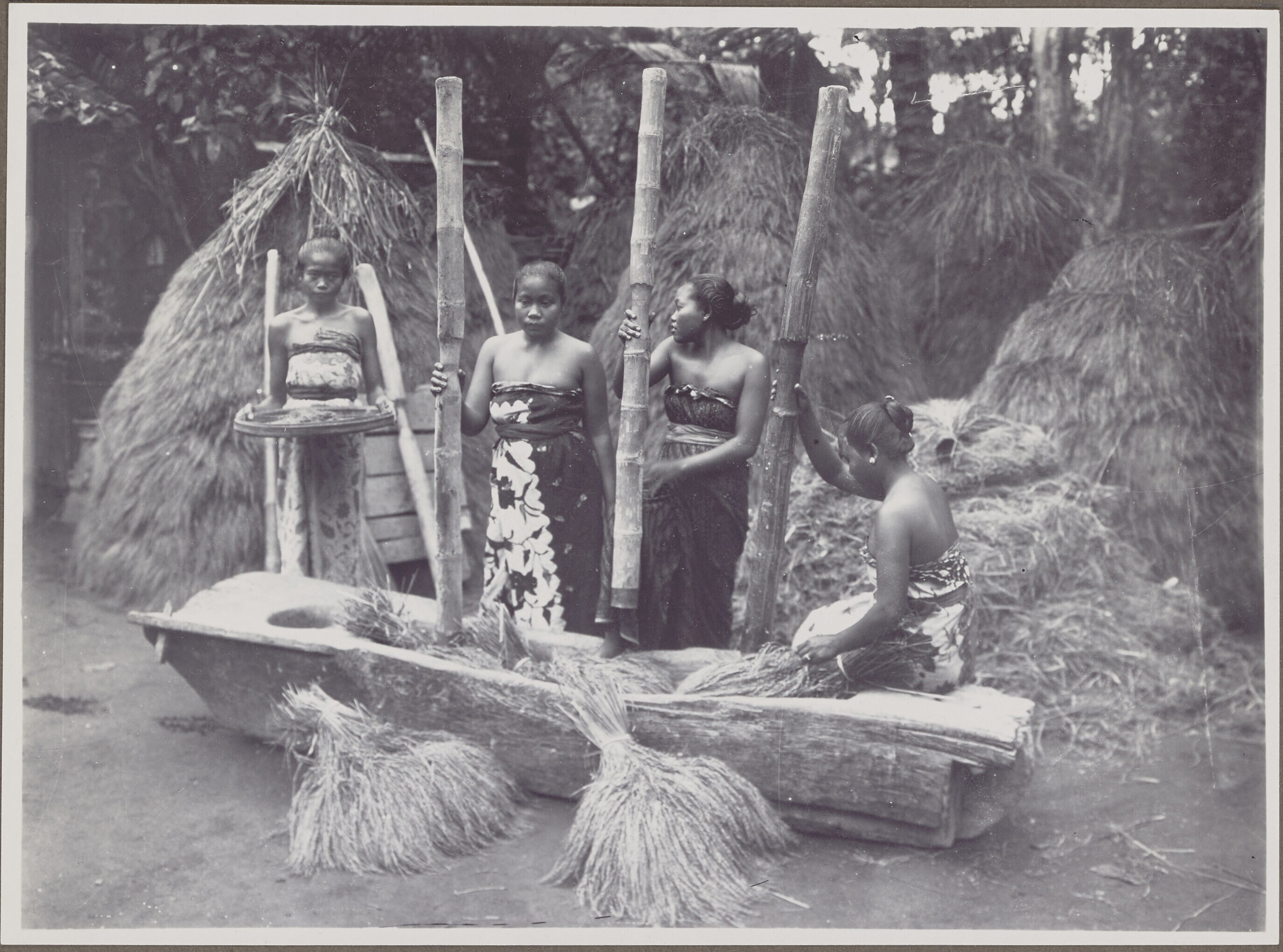 Women winnowing and pounding rice