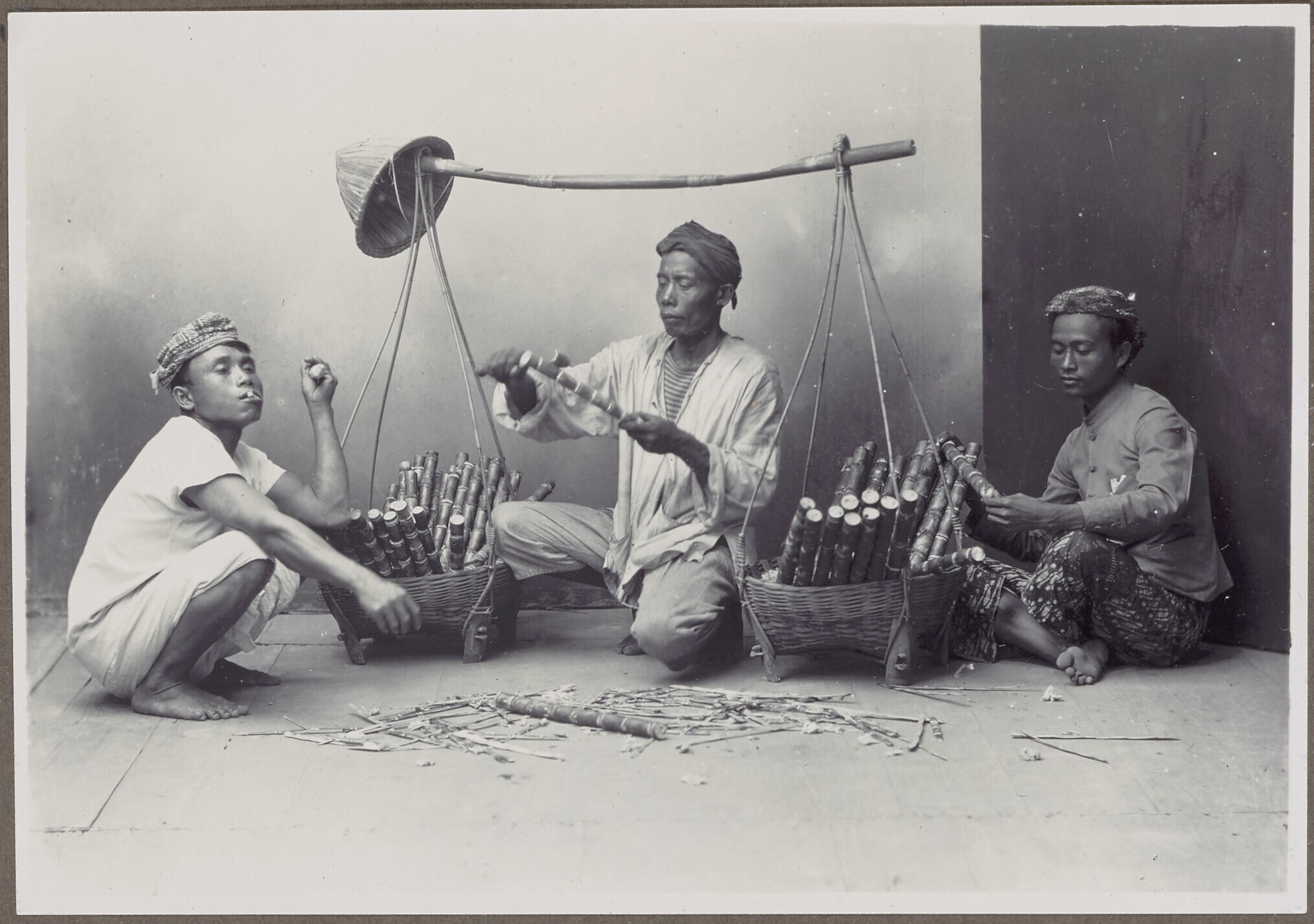 Studioportret van een verkoper van suikerriet met kl...