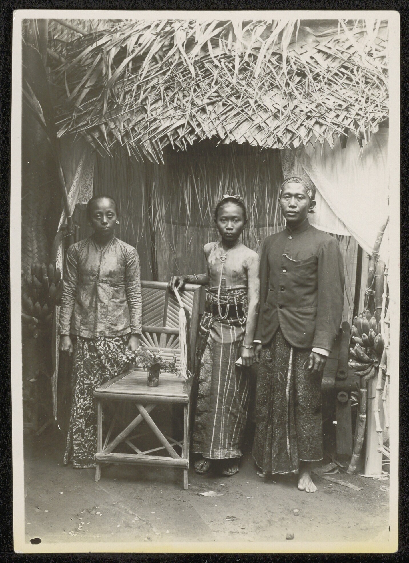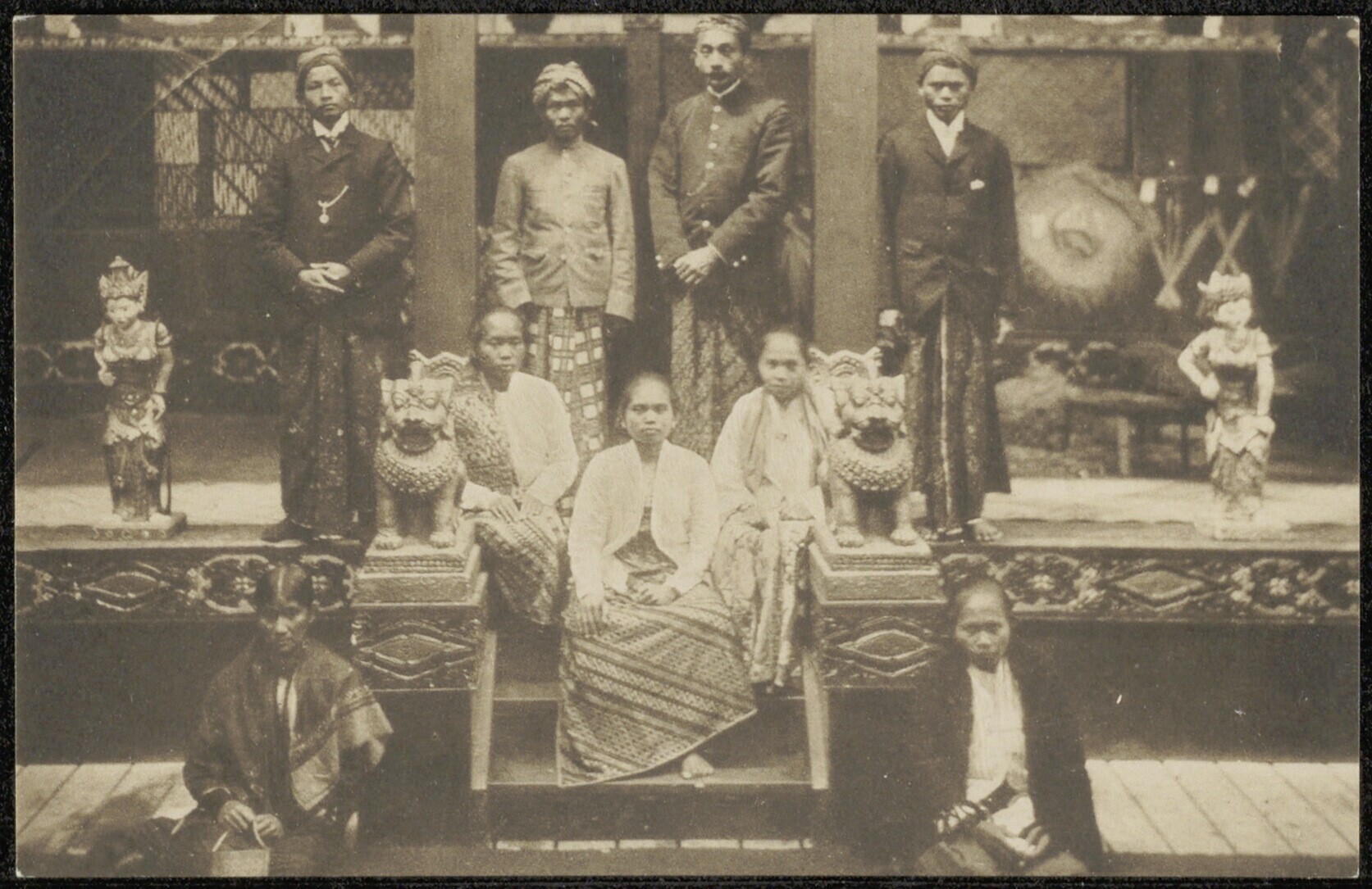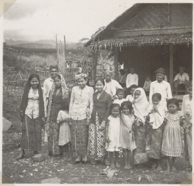 Groepsportret van een Indonesische bruid met haar fa...