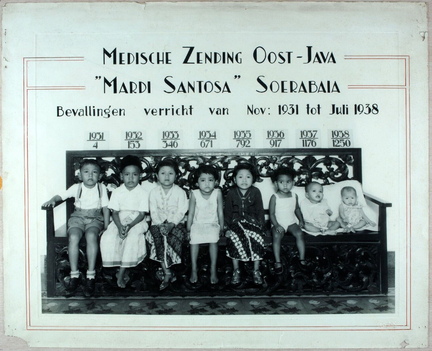 Group portrait children, including statistics of bab...