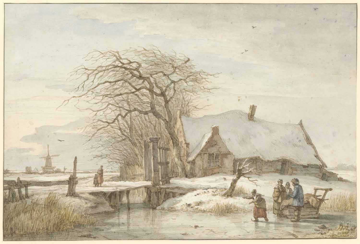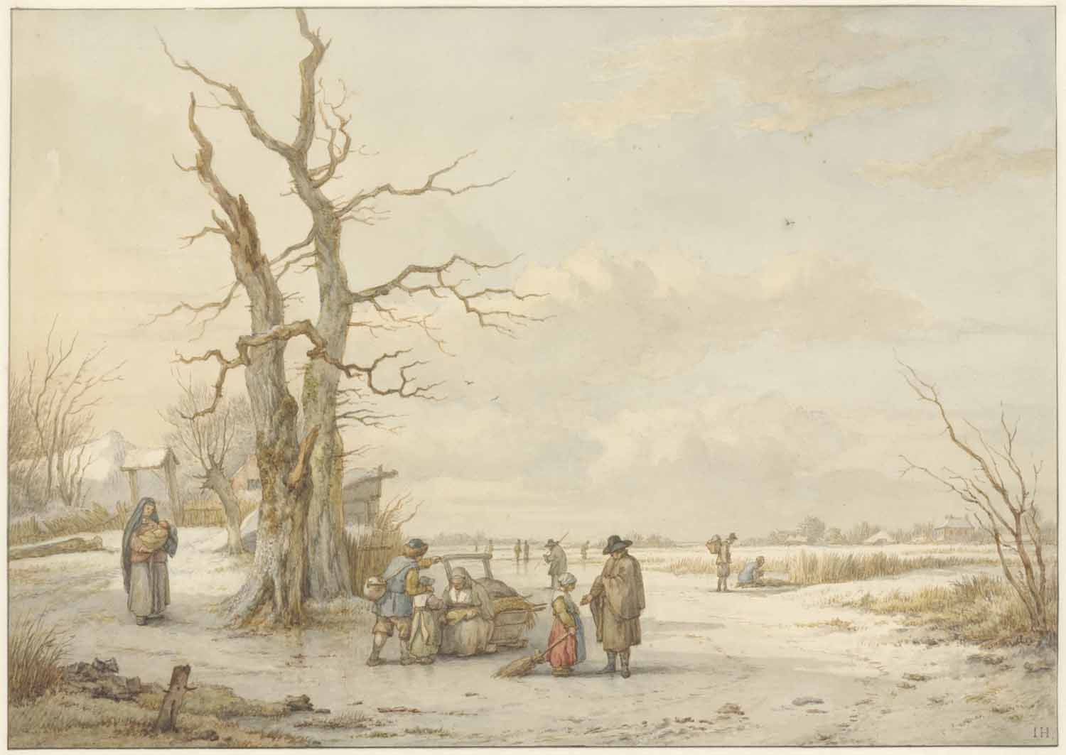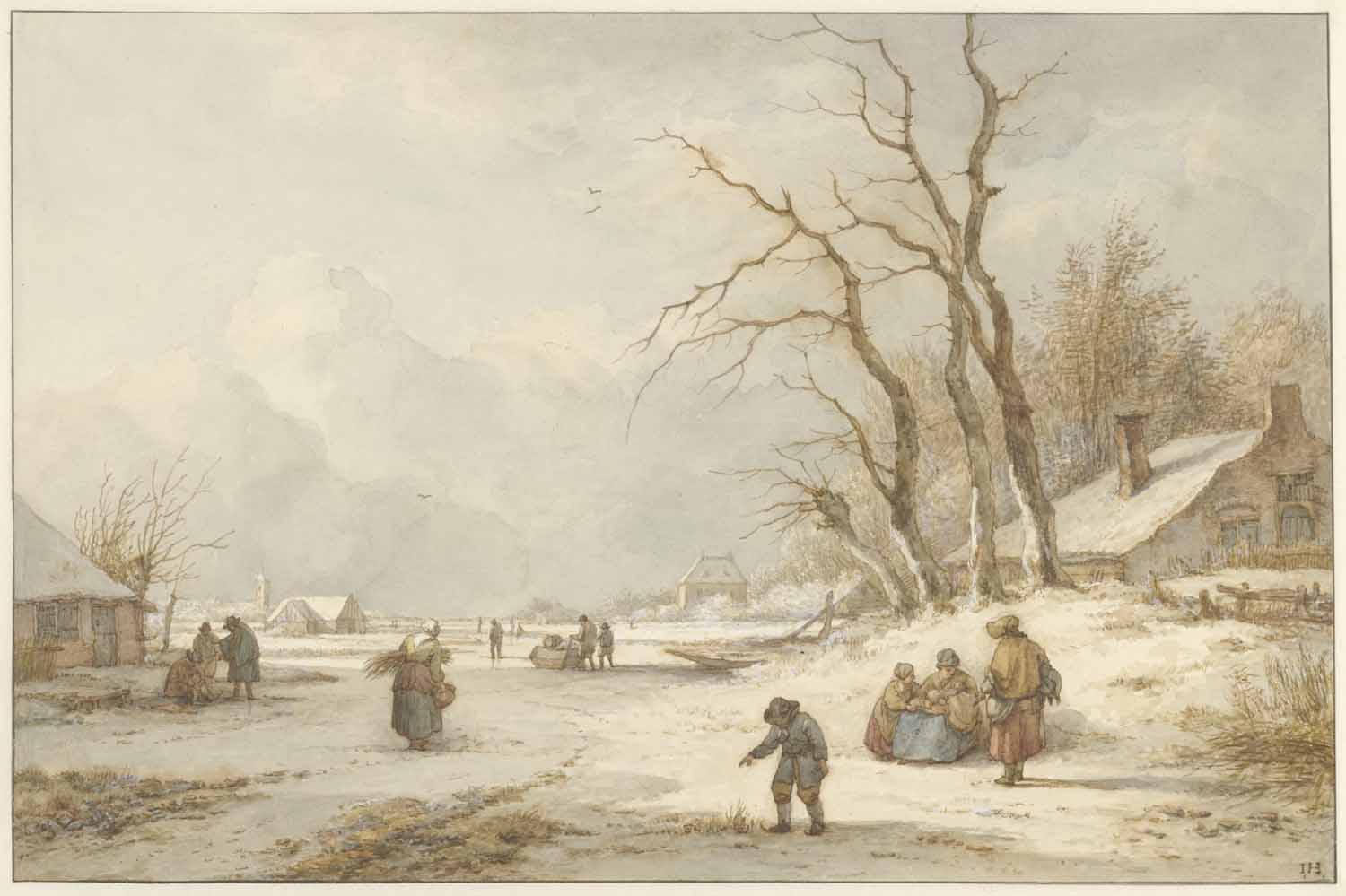 Eene bevrozene rivier, rijk gestoffeerd met schaatse...