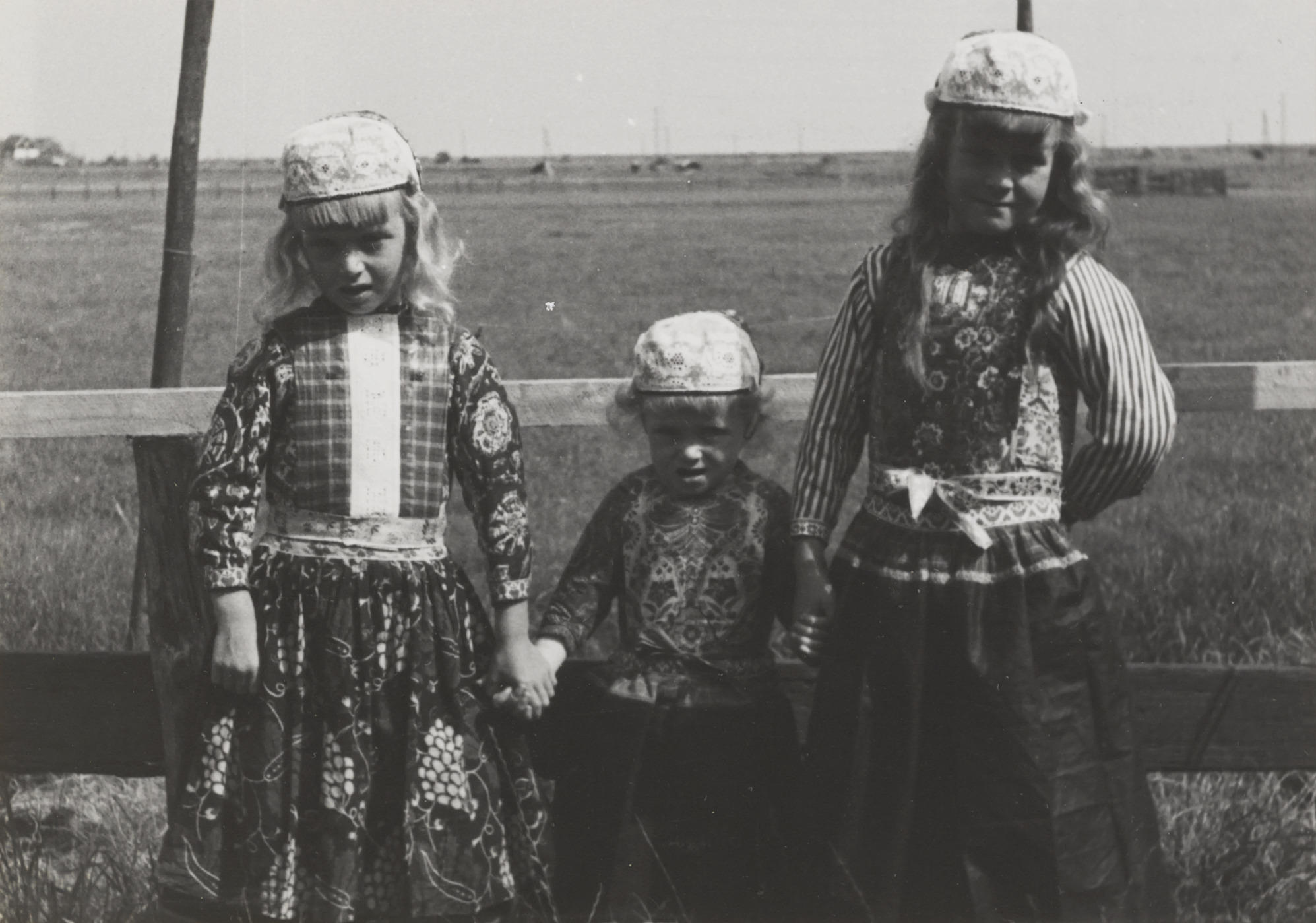 Jongen en twee meisjes in Marker dracht, 1943 (zwart...
