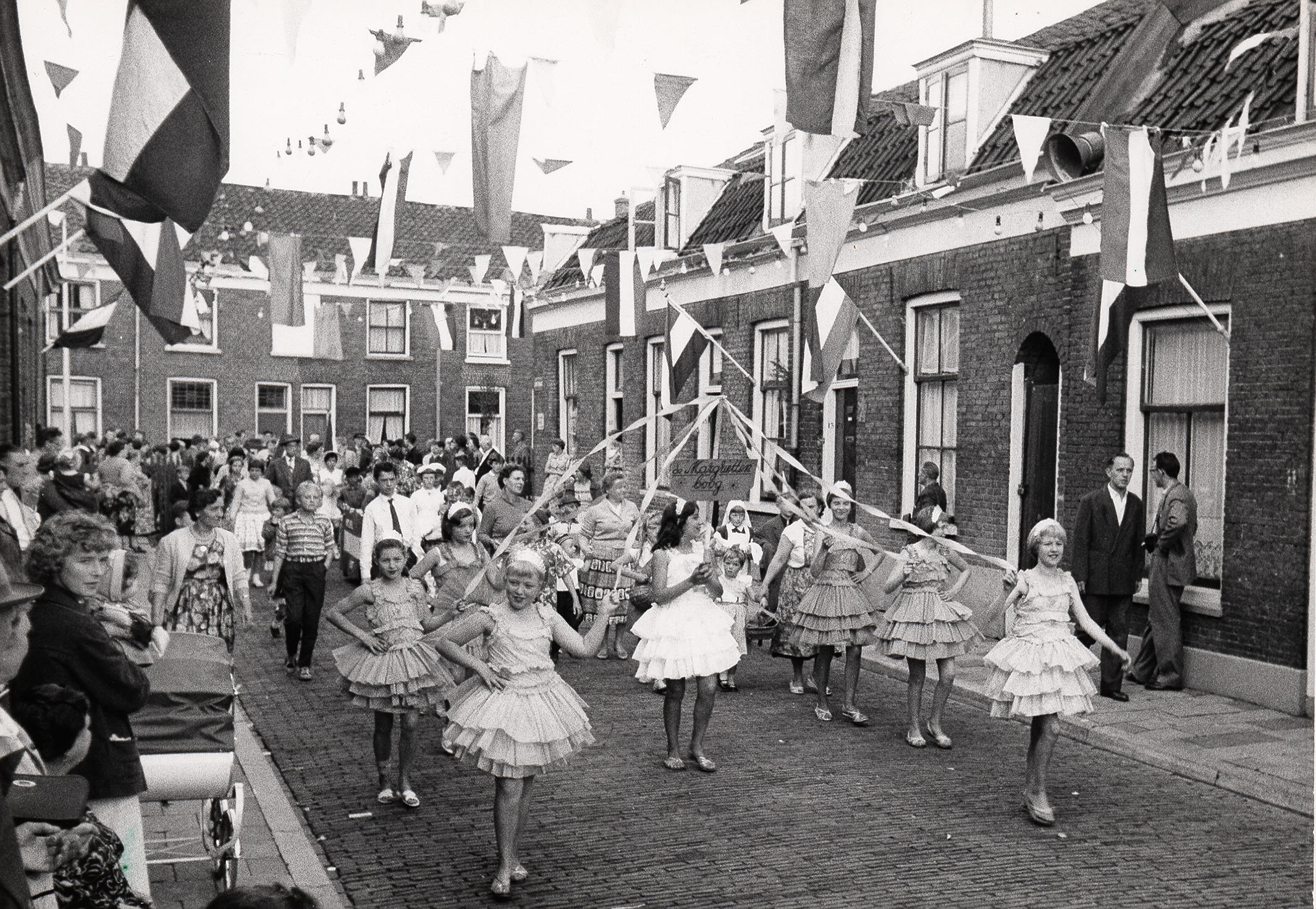 Optocht in Utrecht, 1960 (zwart-wit foto)