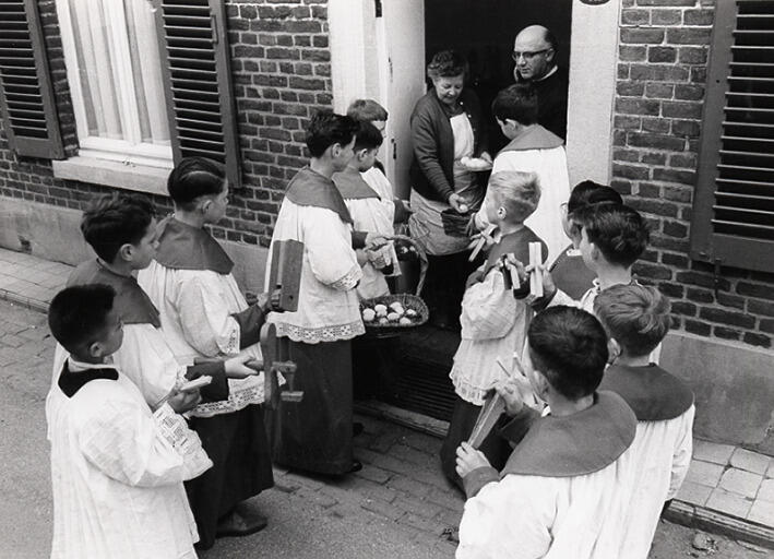 Paaseieren ophalen in Borgharen, 1961 (zwart-wit foto)