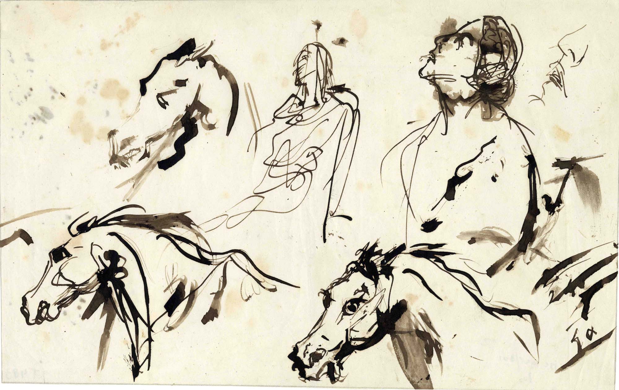 Studies van figuren en paarden