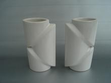 twee witte vazen met drie vlakken waarvan middelste ...
