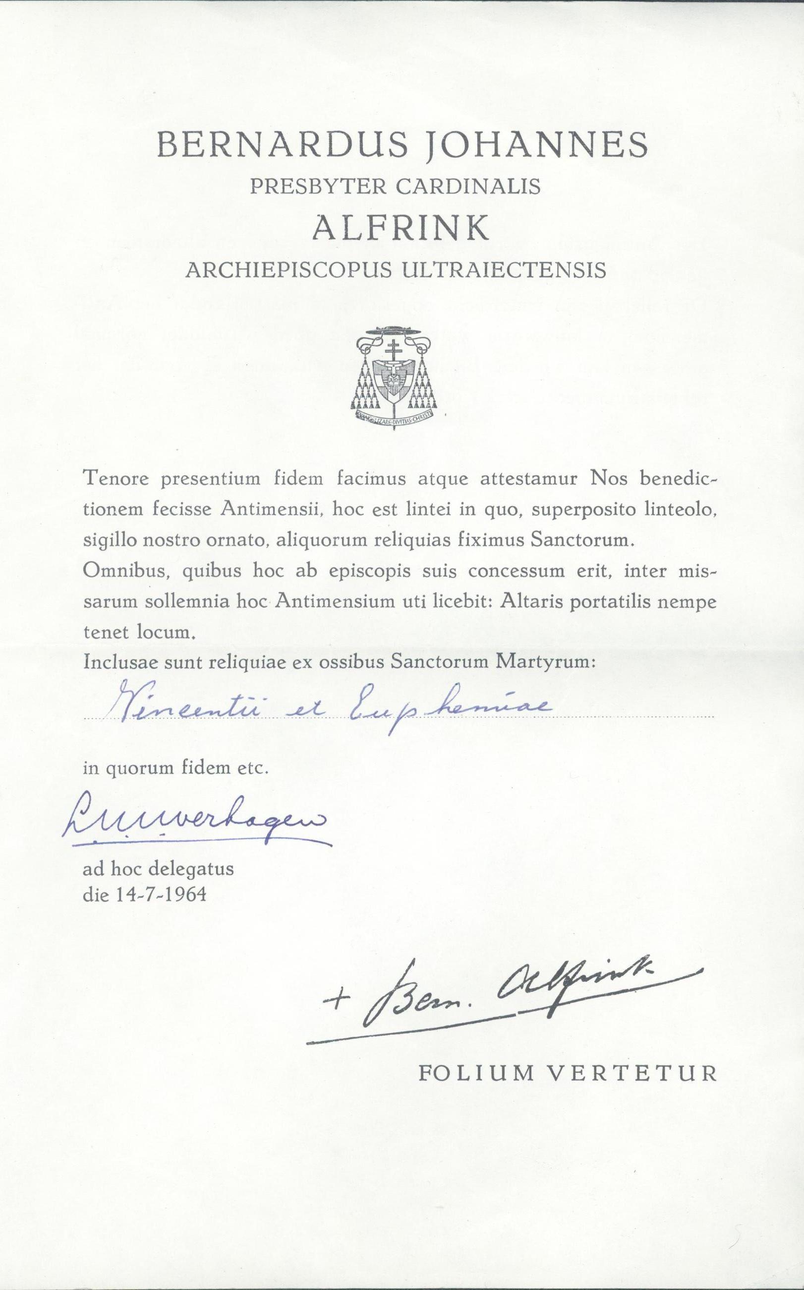 Verklaring behorend bij antimensium StCC t435a, met ...