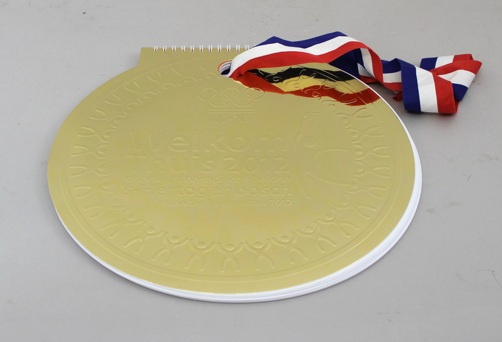 Goudkleurig boek "Welkom thuis 2012" met lint. Olymp...