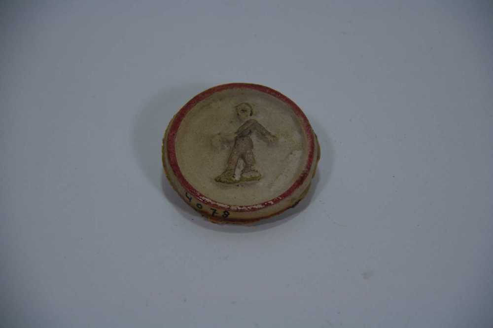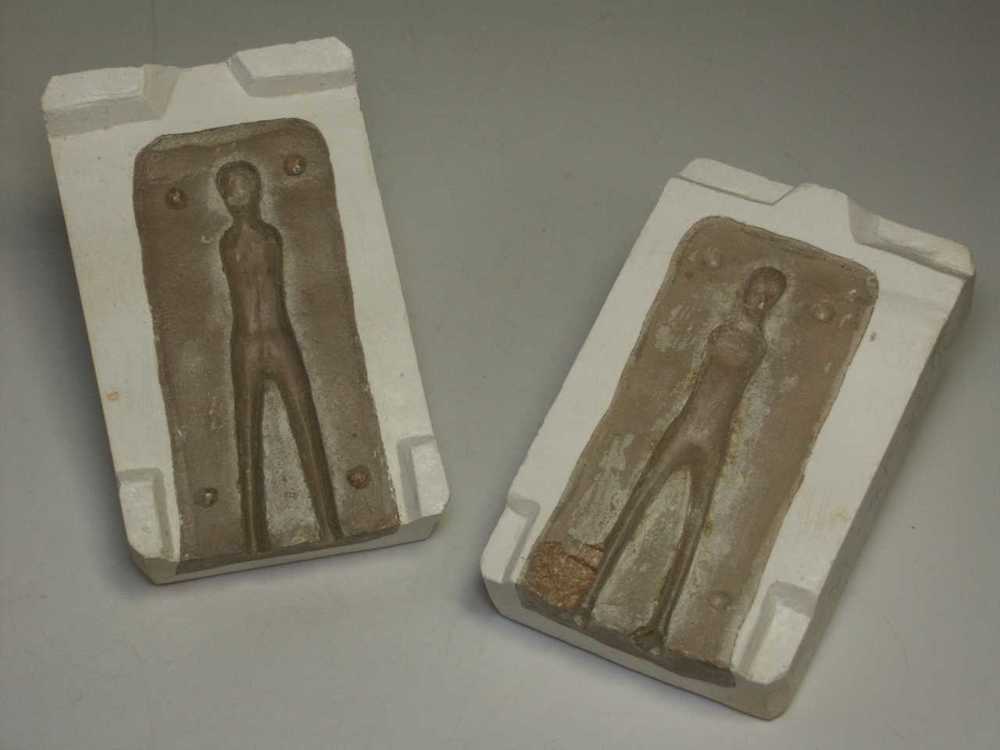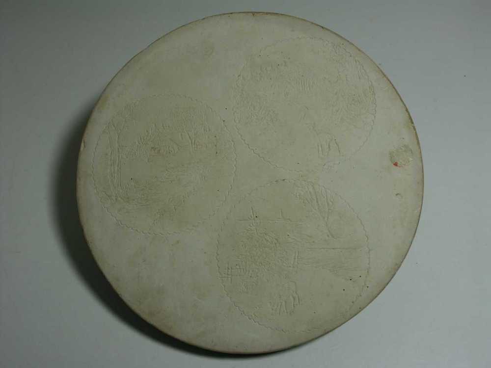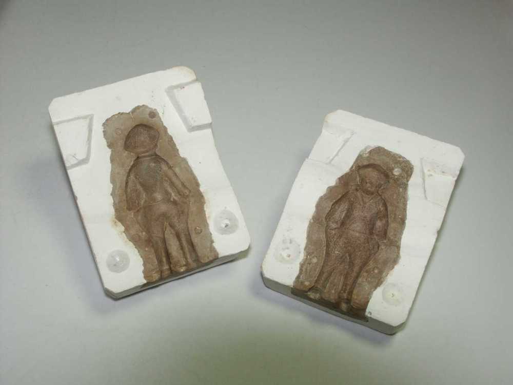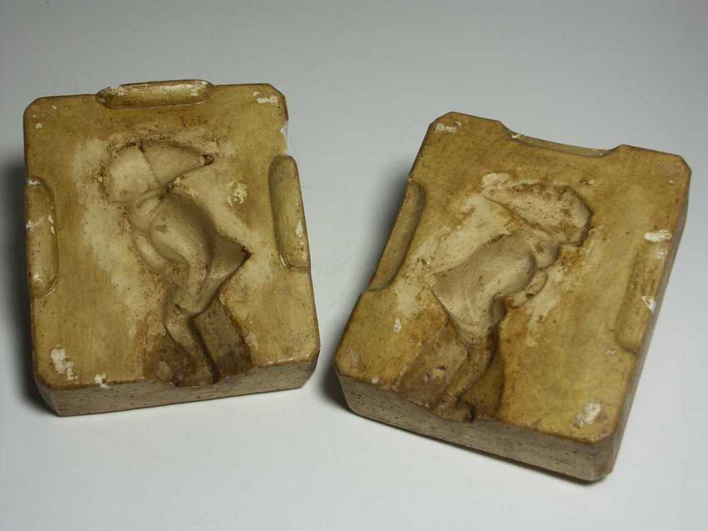 Stuifvorm van gips met 3 figuren: boerderij met beek...