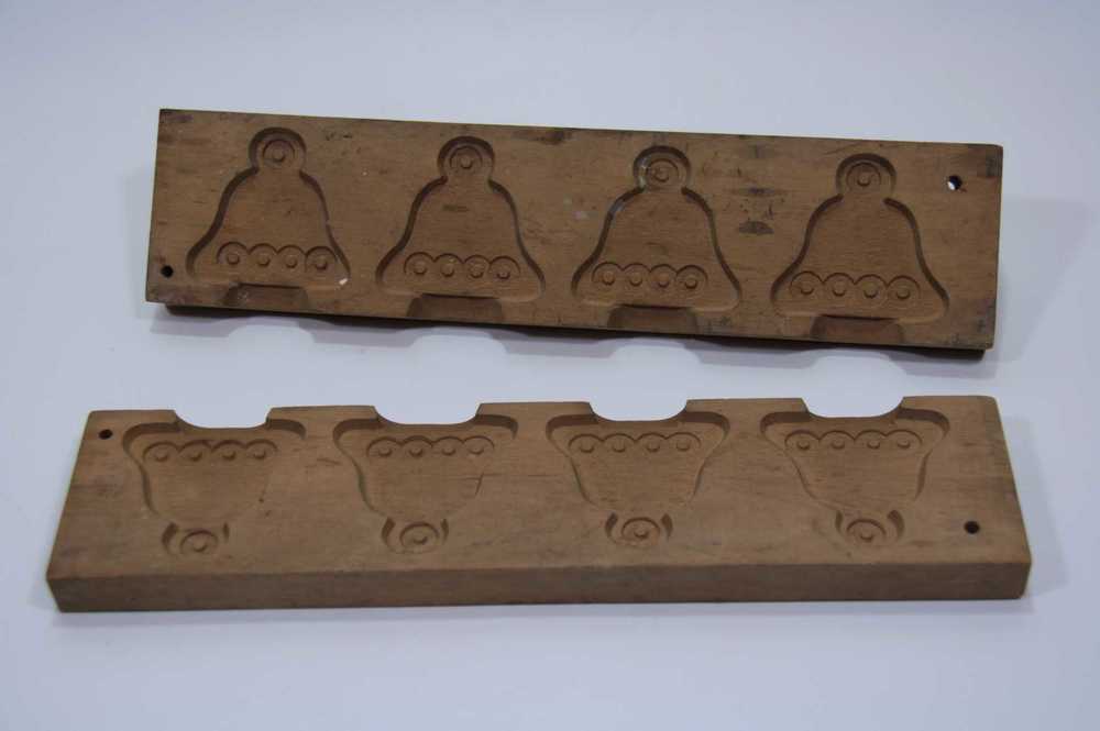 Marsepeinplank van hout met 2 ronde decoratieve figu...