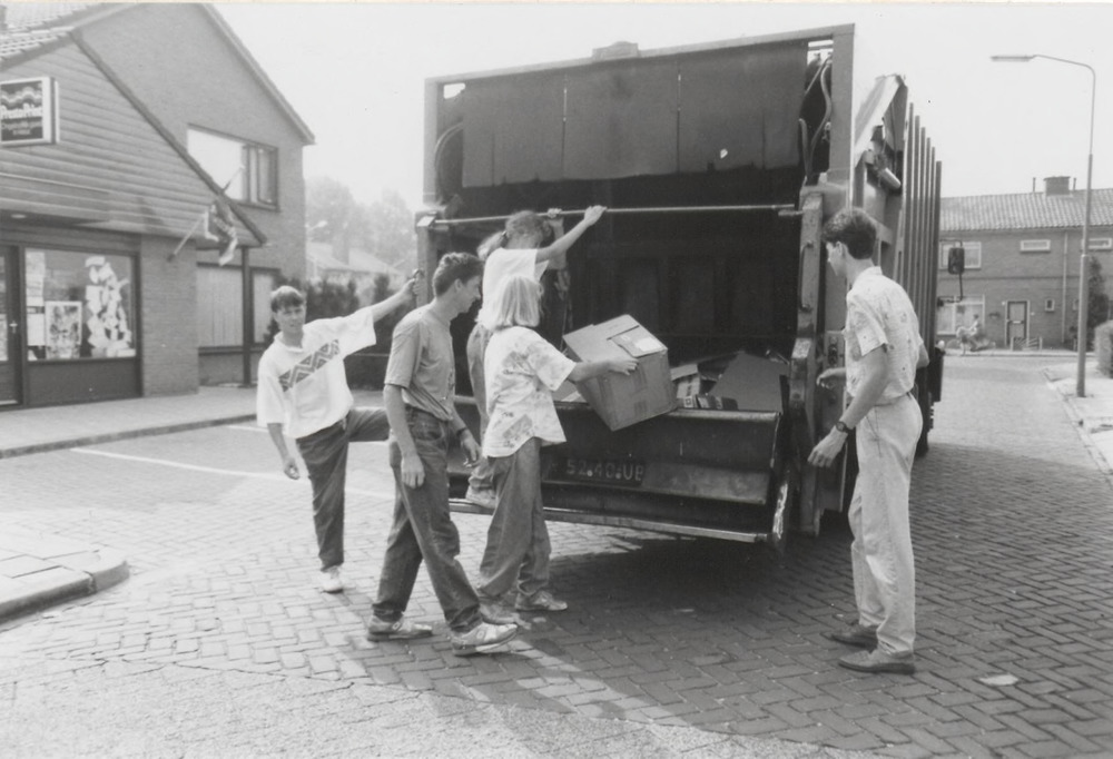 Ophalen oud papier door leden van muziekver. Amicitia.