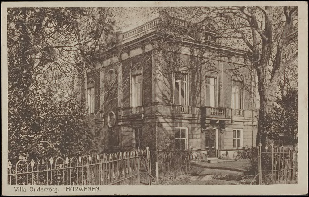 Weesmeisjes in de tuin. Repro van ansichtkaart