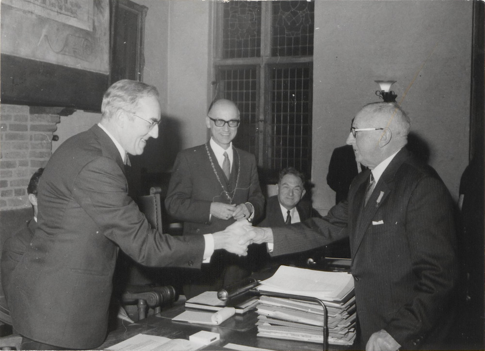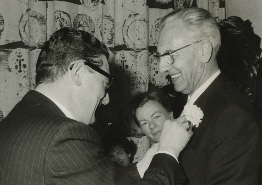Dominee Van 't Hof ontvangt de zilveren erepenning v...