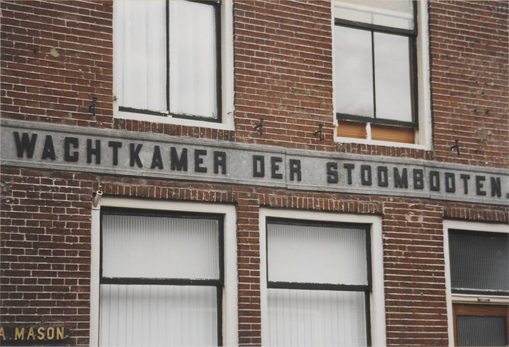 "WACHTKAMER DER STOOMBOTEN". Letters op een stenen b...