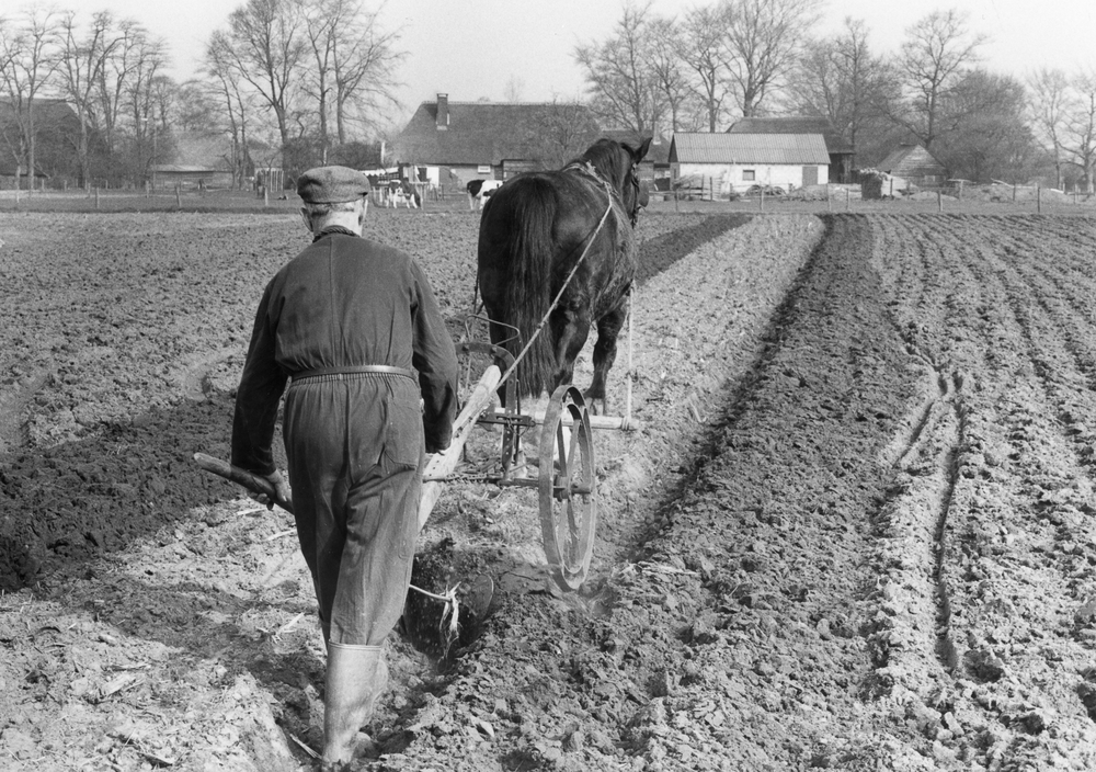 Ploegende boer aan de Tabaksweg in Hierden