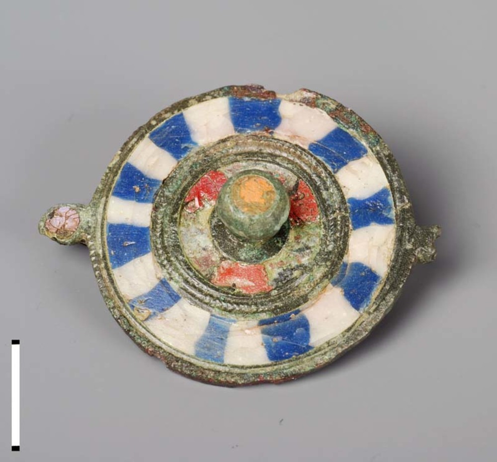 Geëmailleerde schijffibula van brons uit de Romeinse...