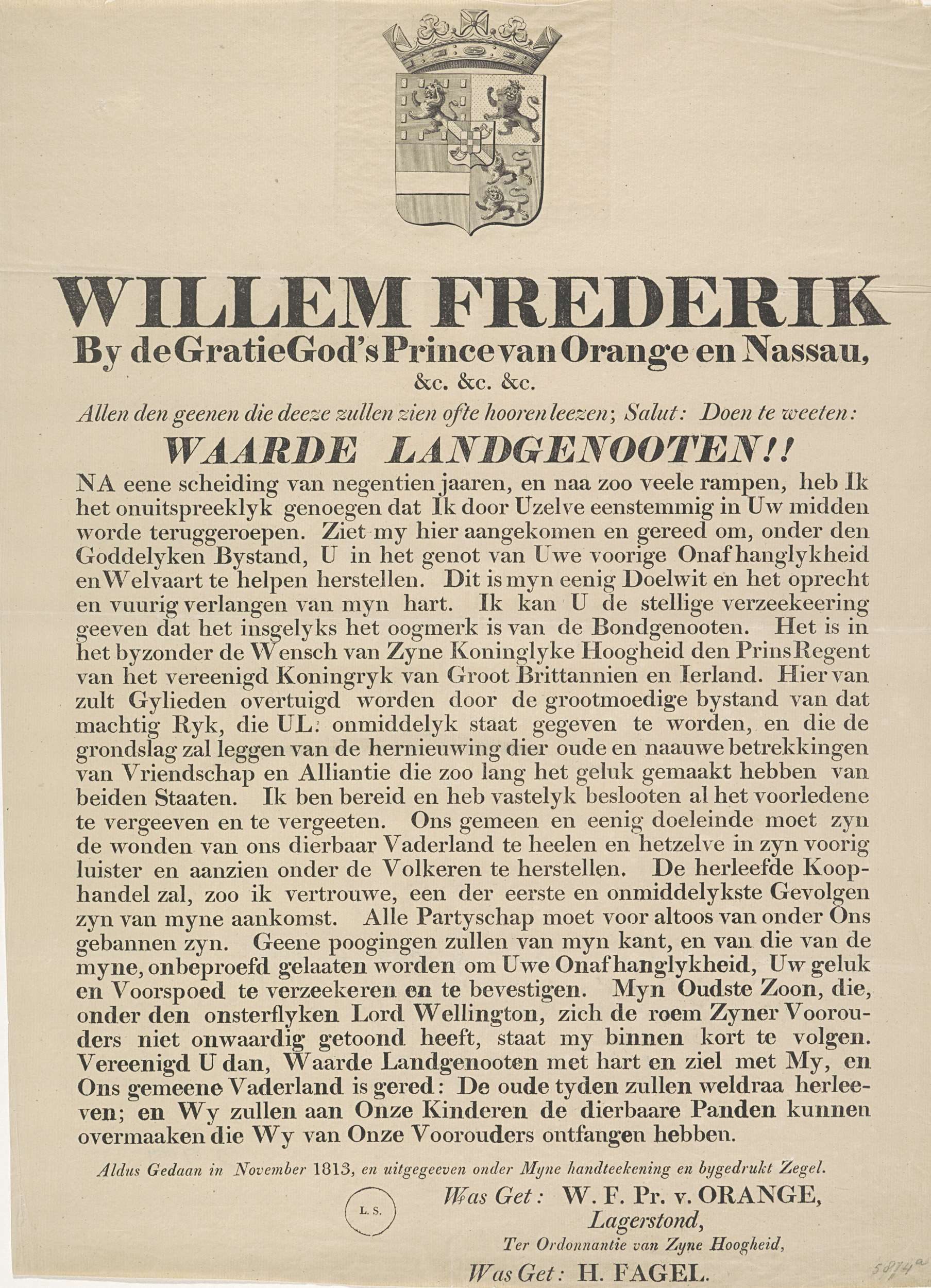 Proclamatie van de Prins van Oranje bij zijn aankoms...