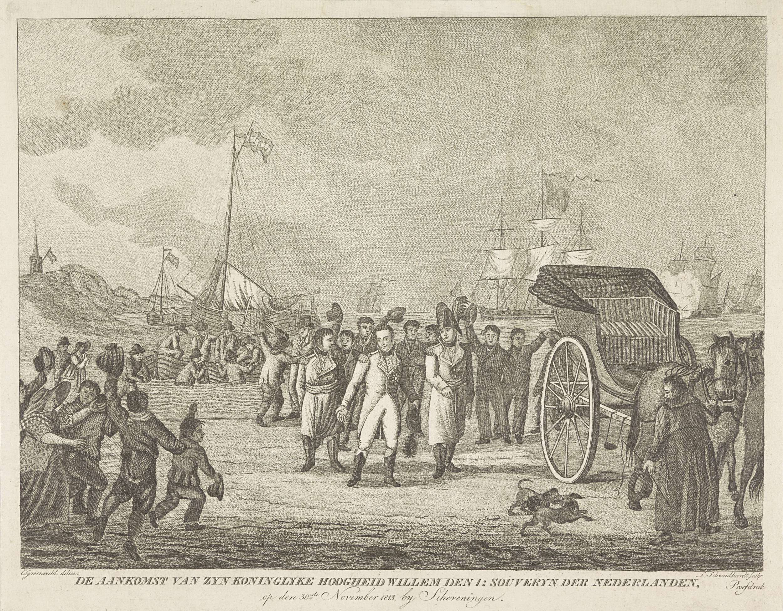 Aankomst van de prins van Oranje te Scheveningen, 1813