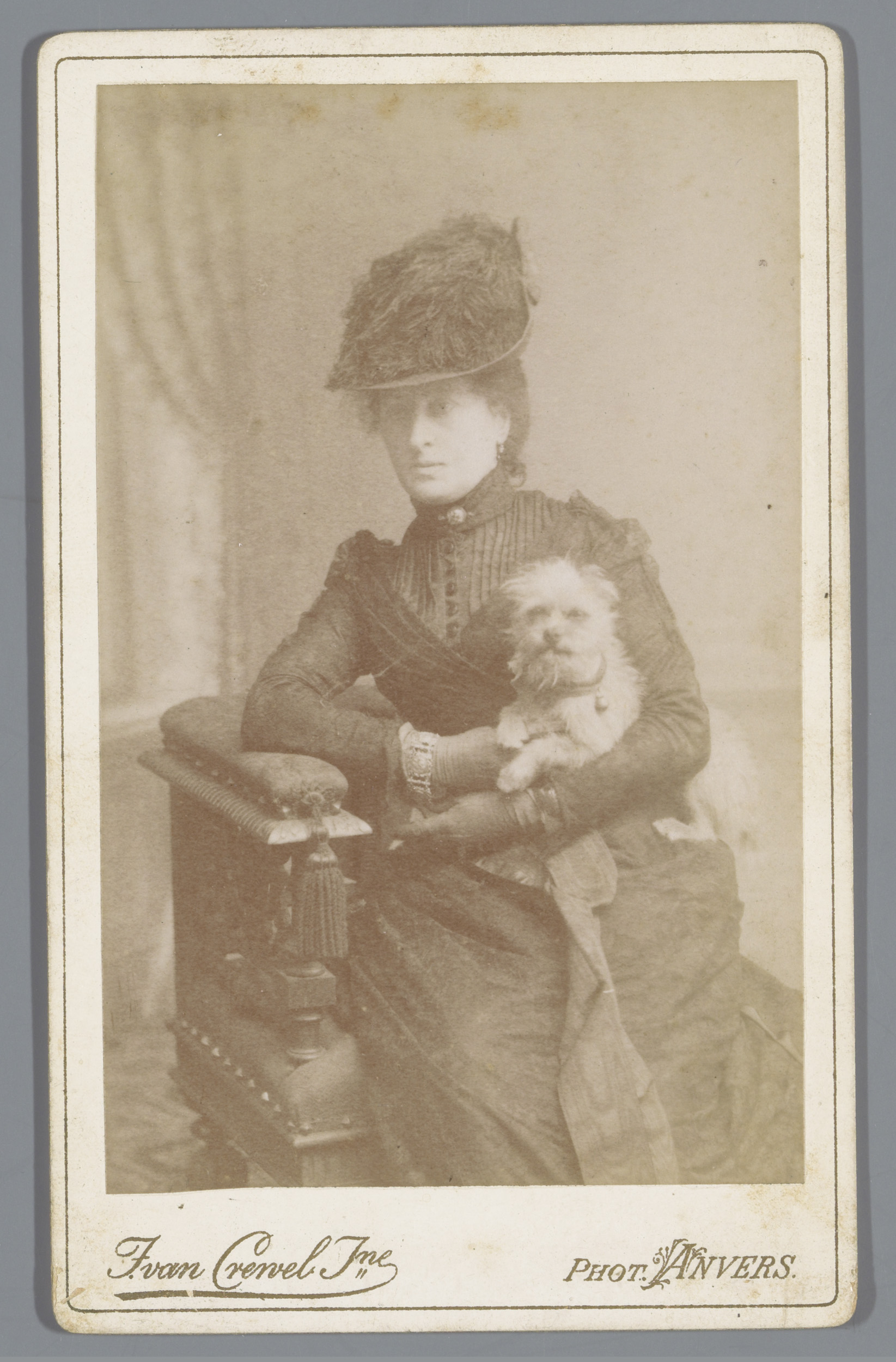 Portret van een onbekende vrouw met een hond op schoot