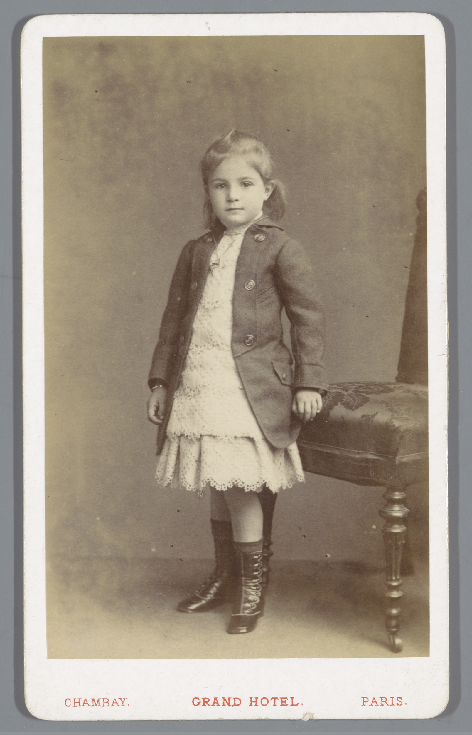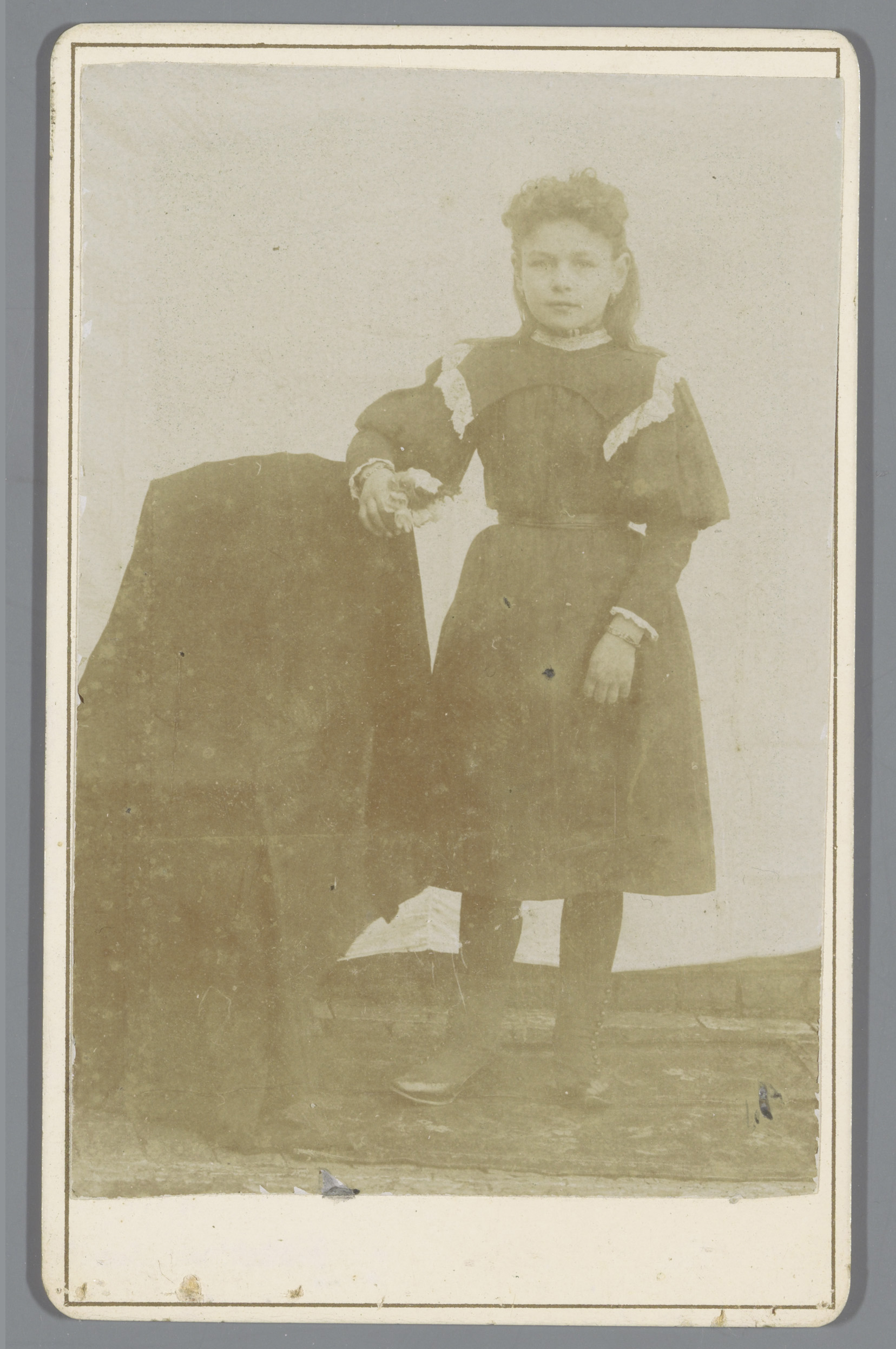 Portret van een onbekend meisje naast een stoel