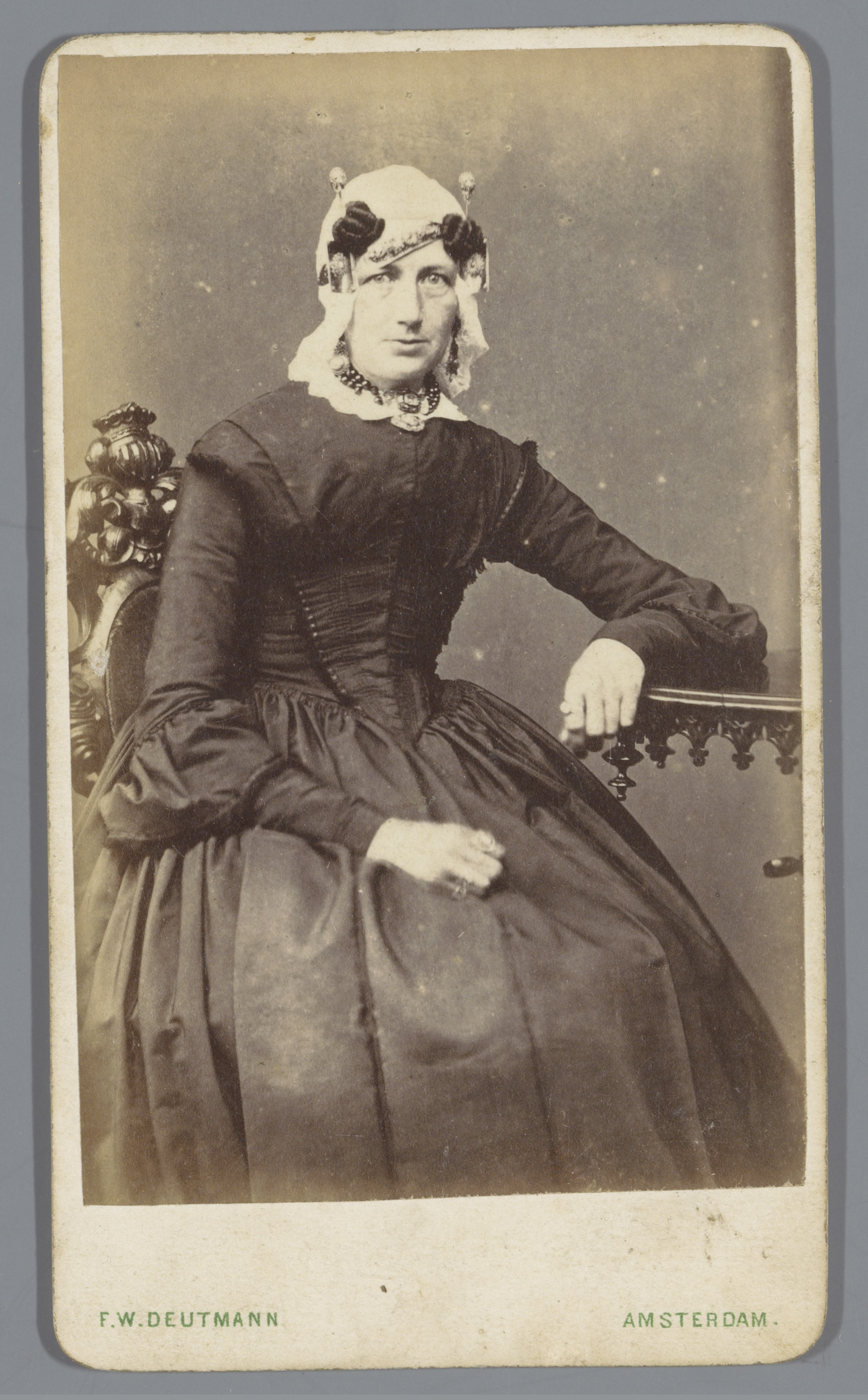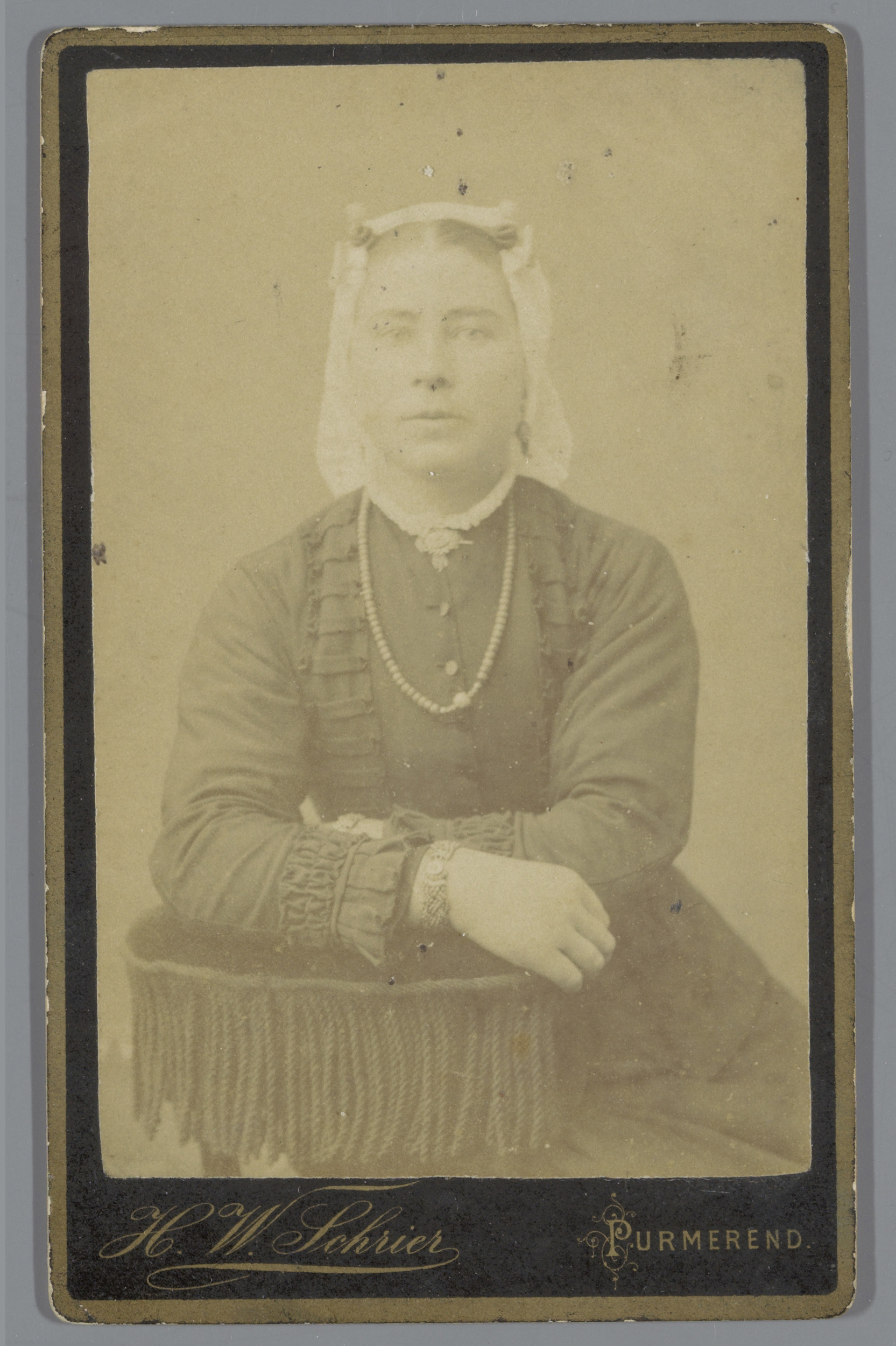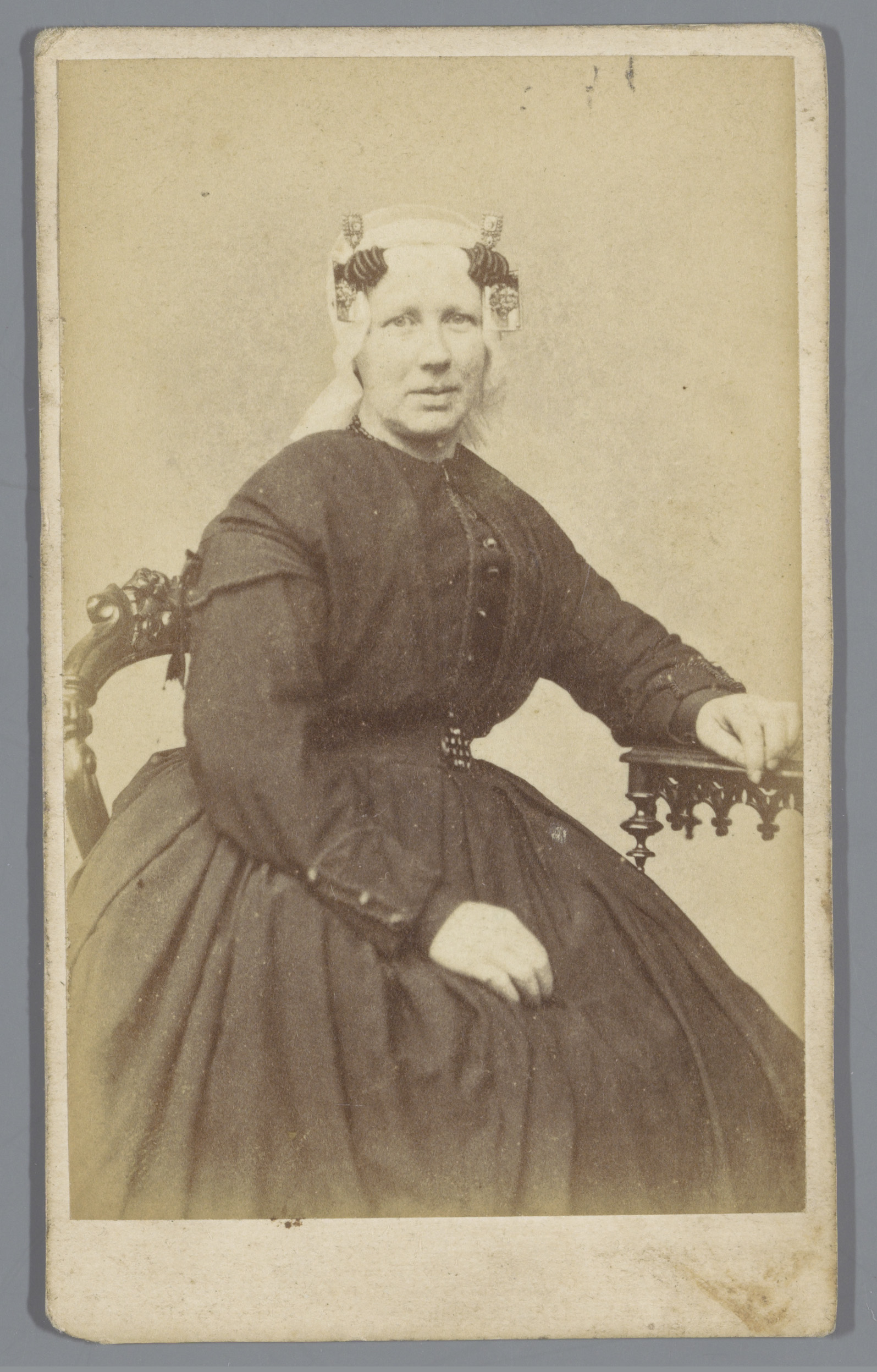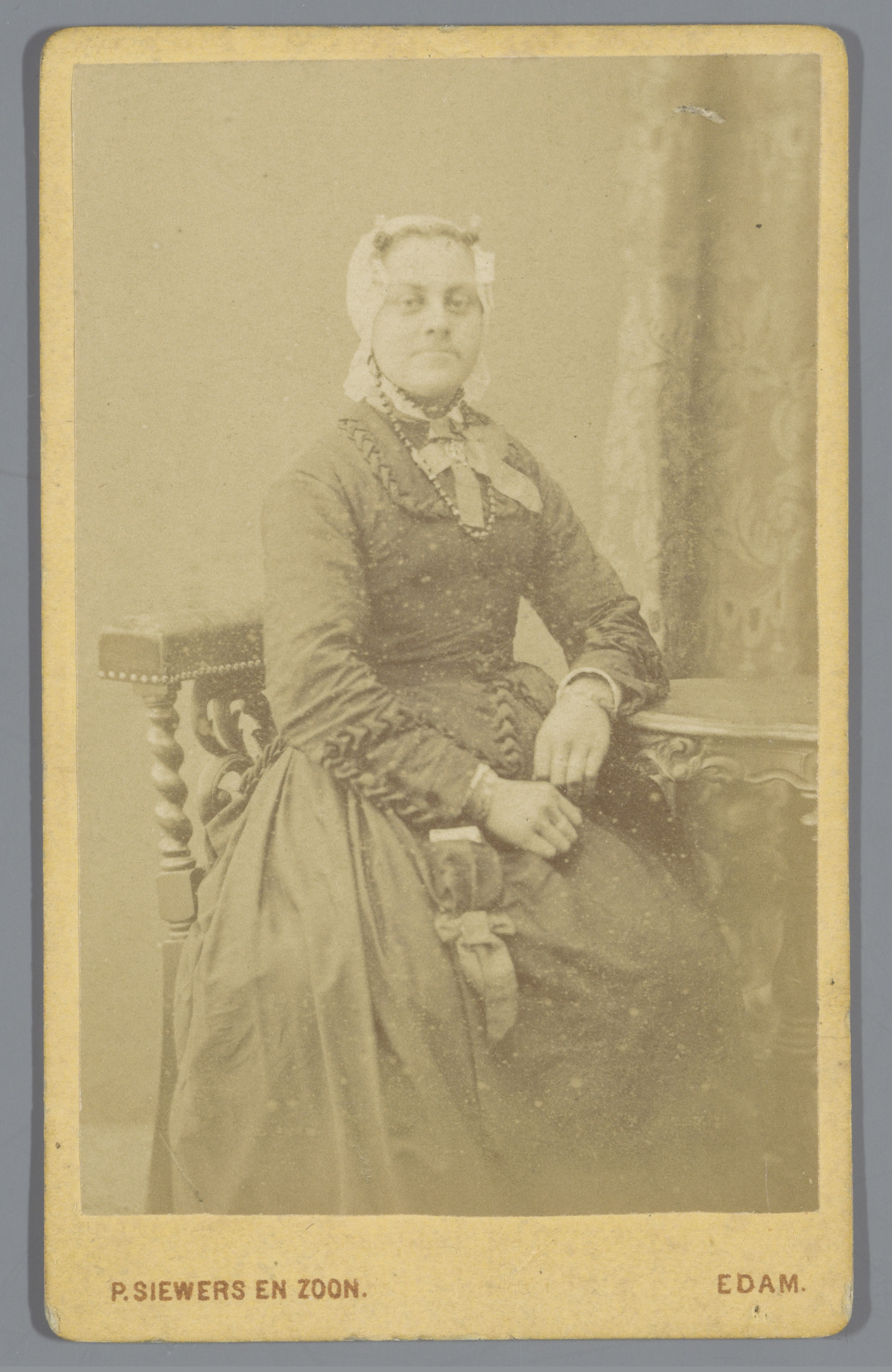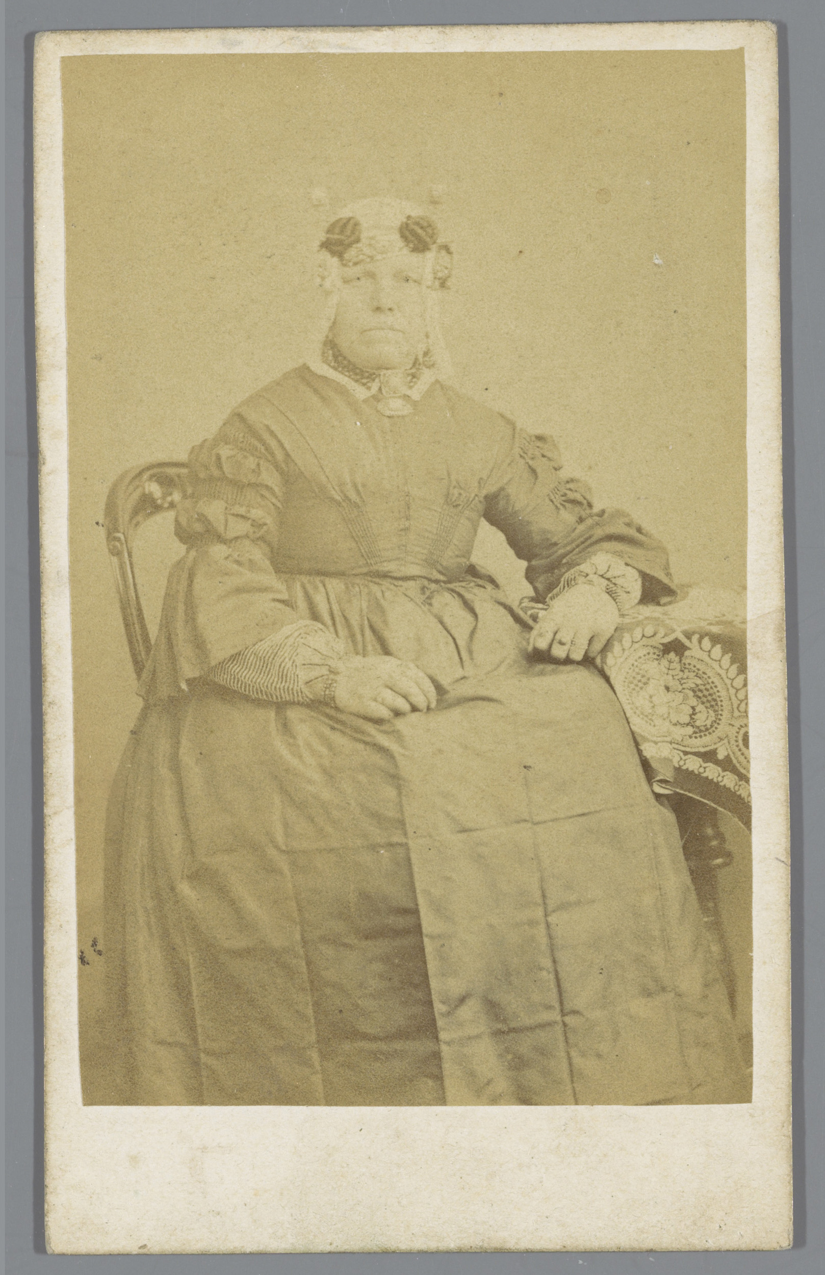 Portret van een onbekende vrouw met een muts, zitten...