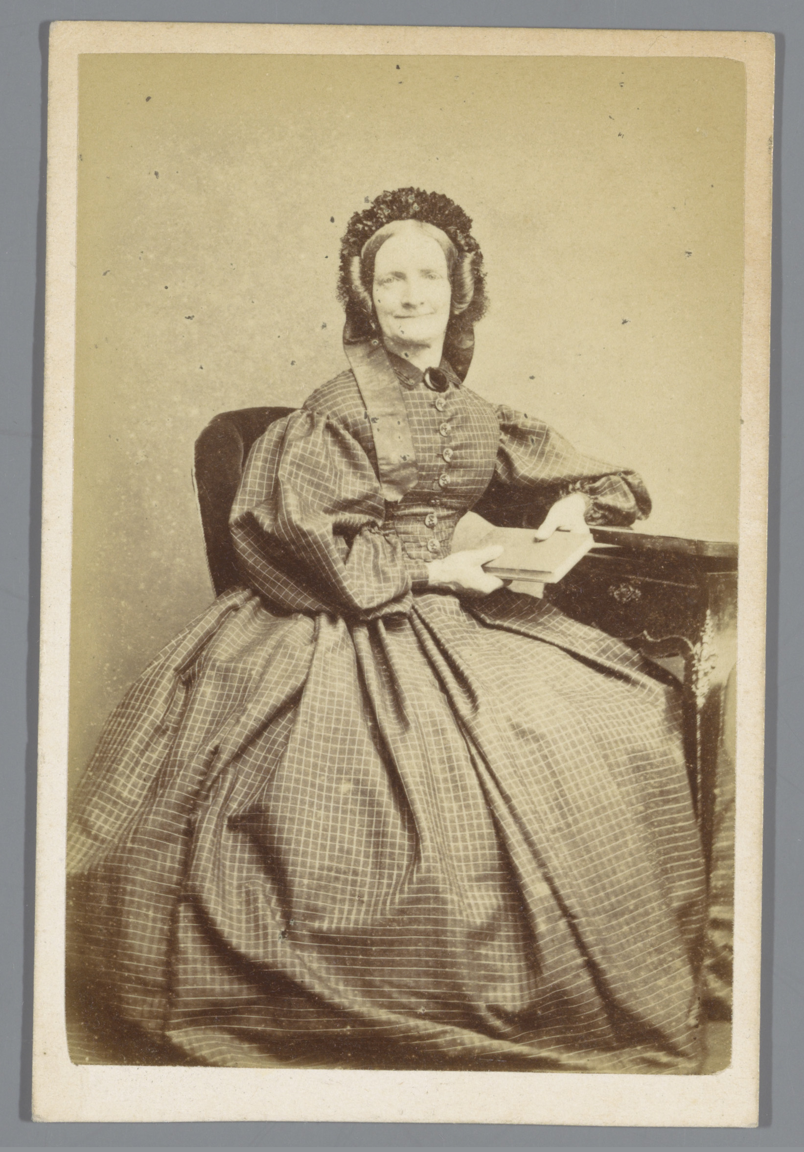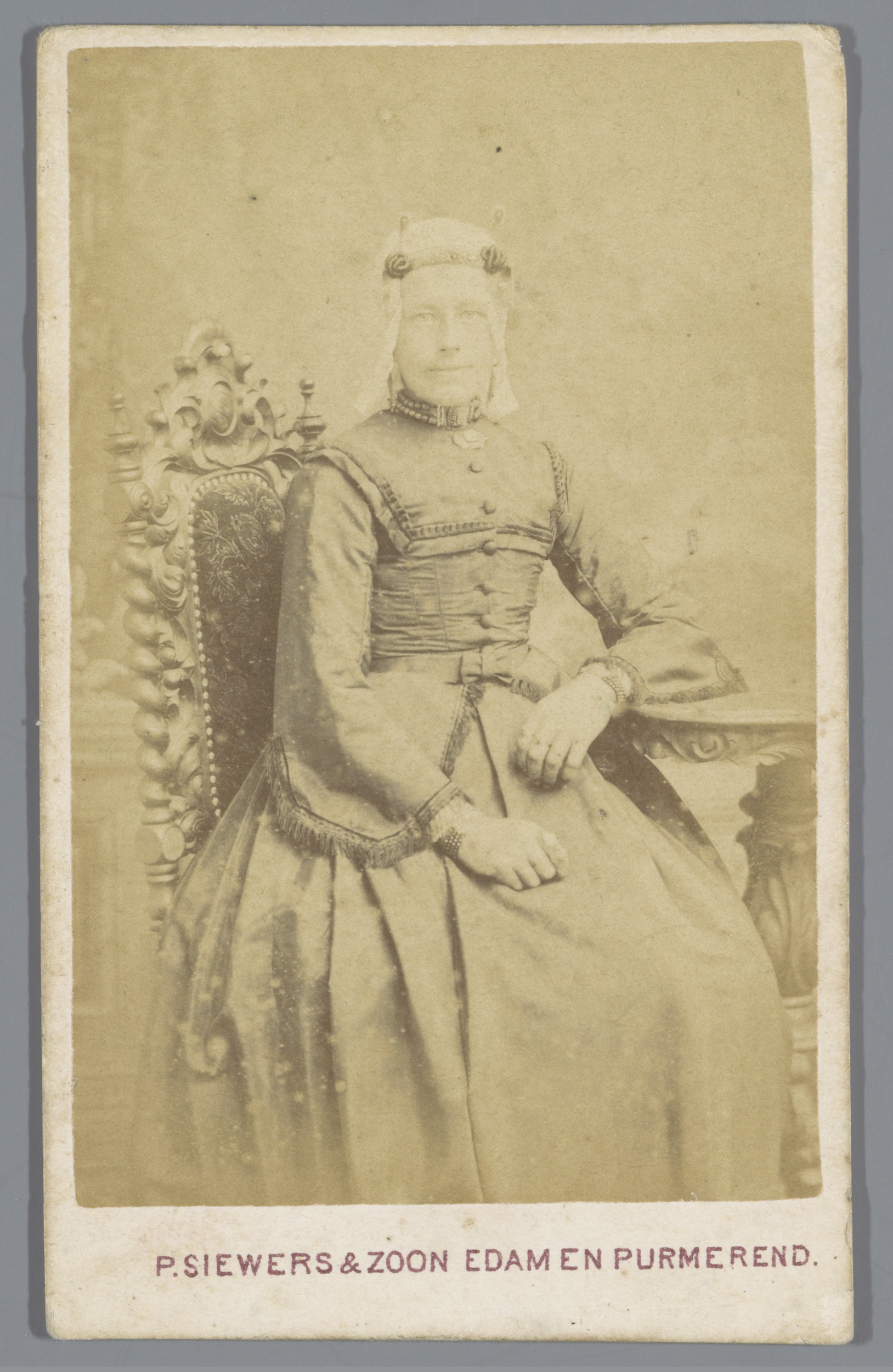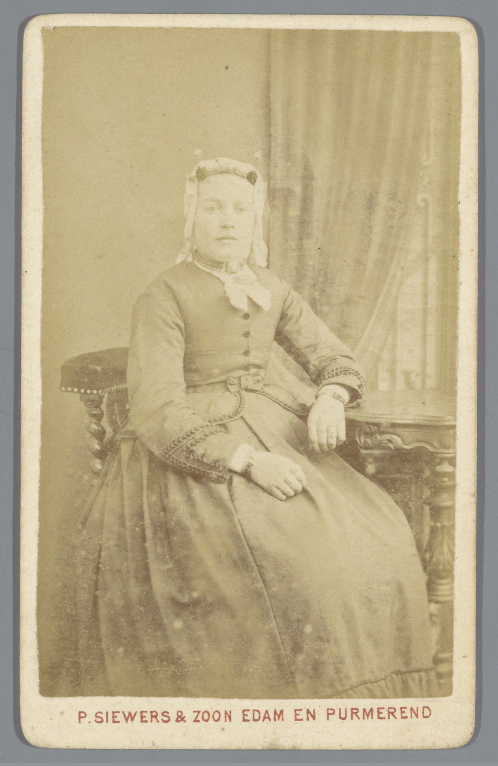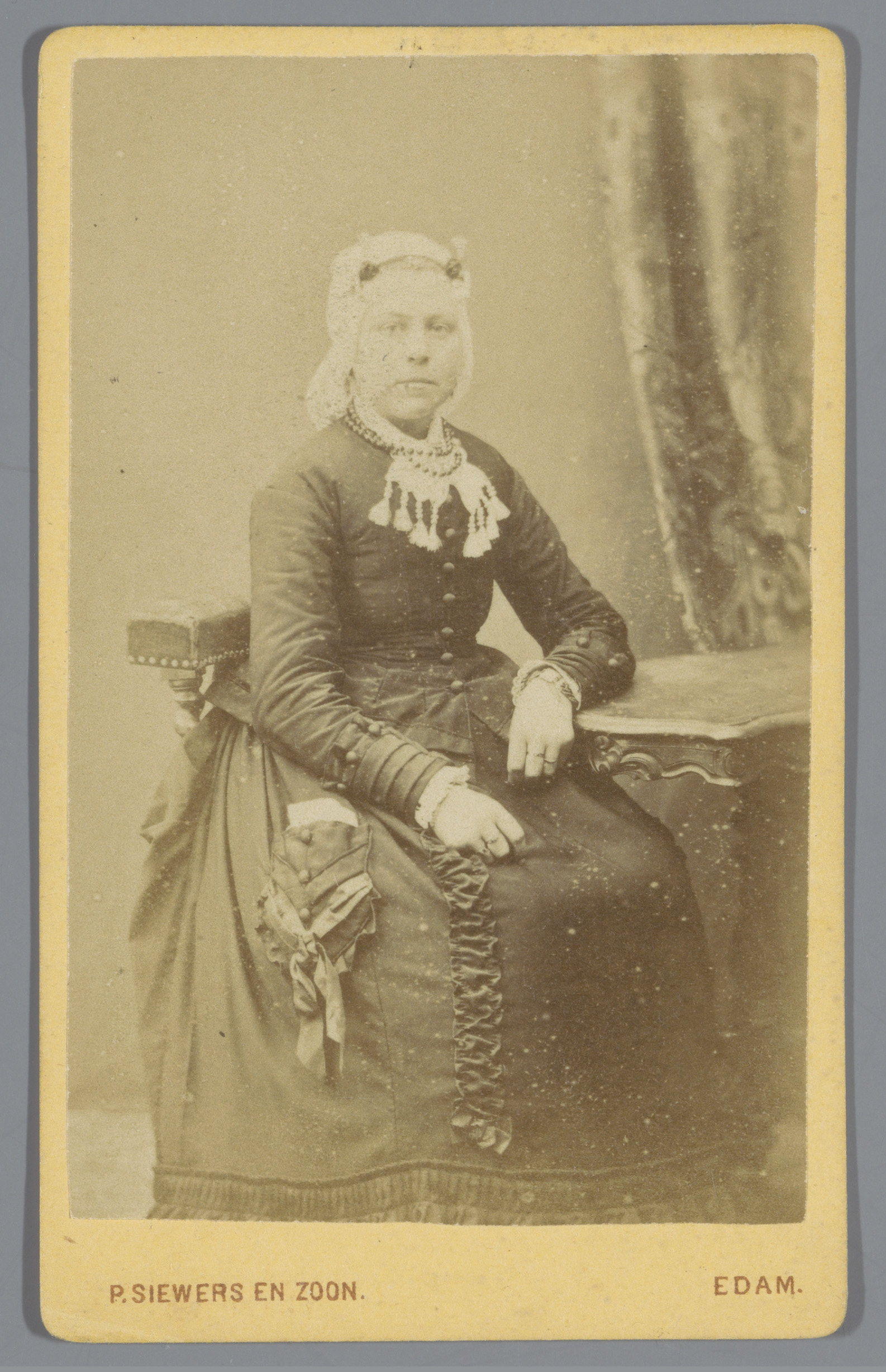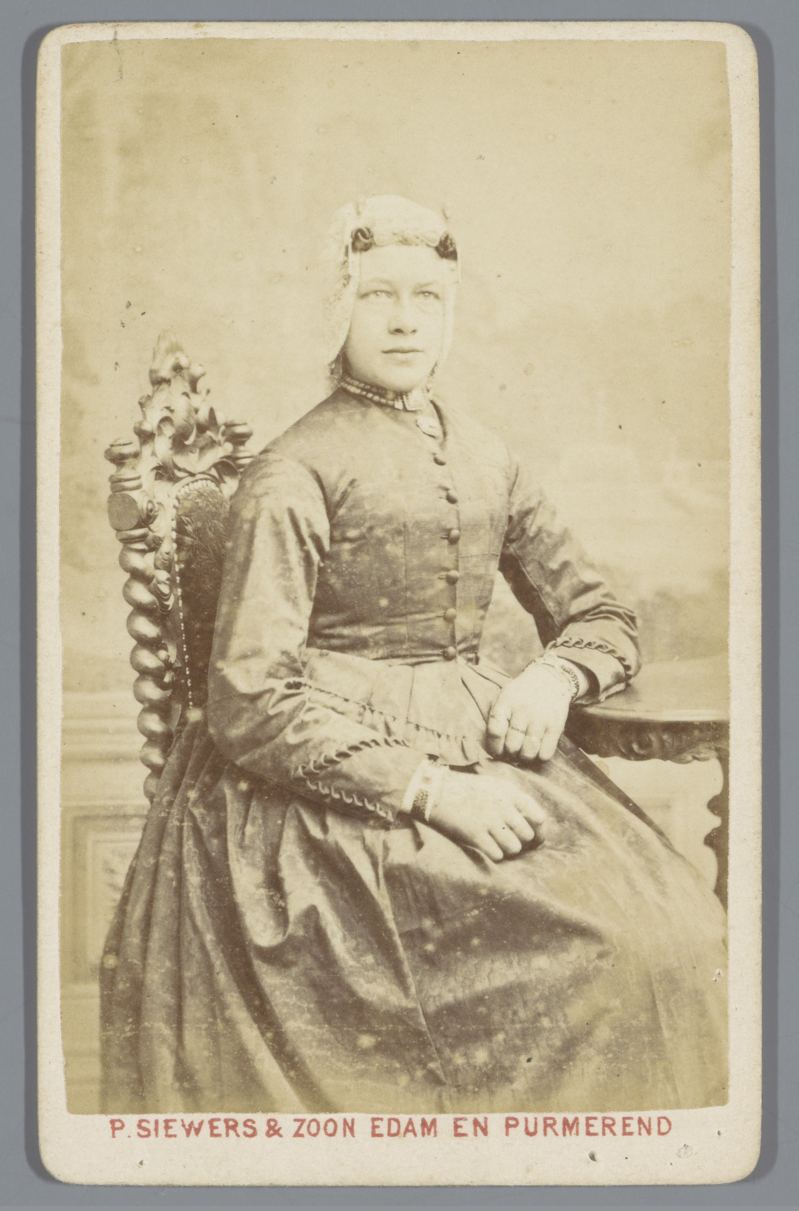 Portret van een onbekende vrouw met een muts, zitten...