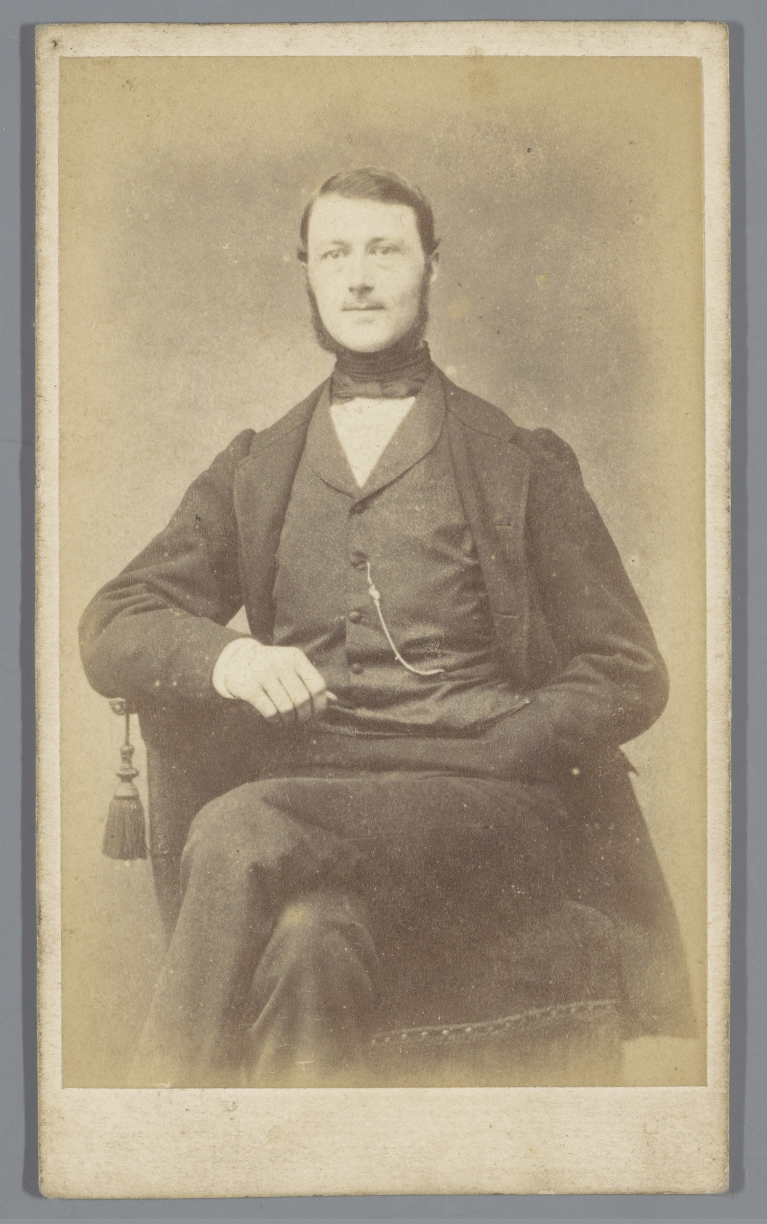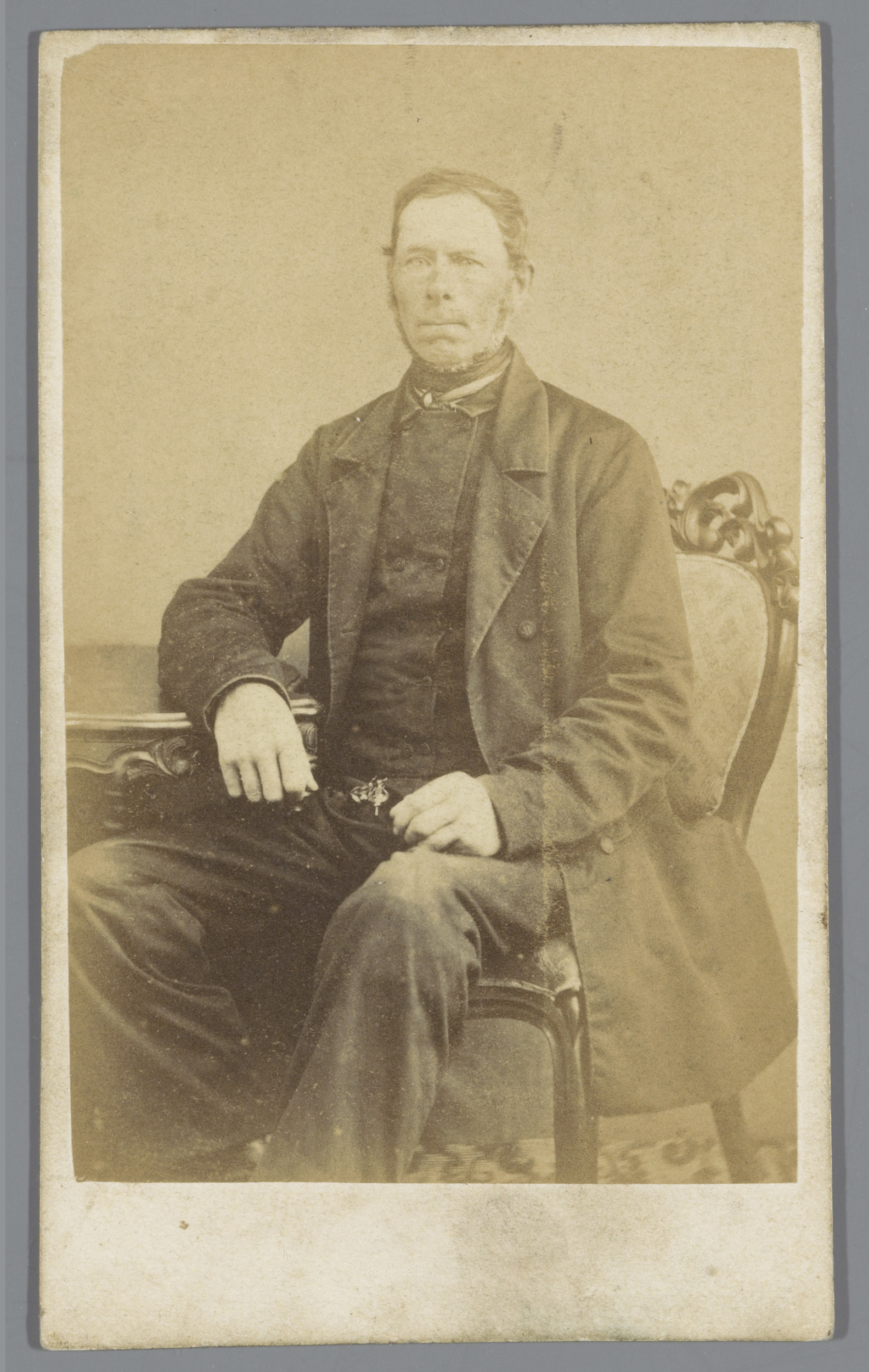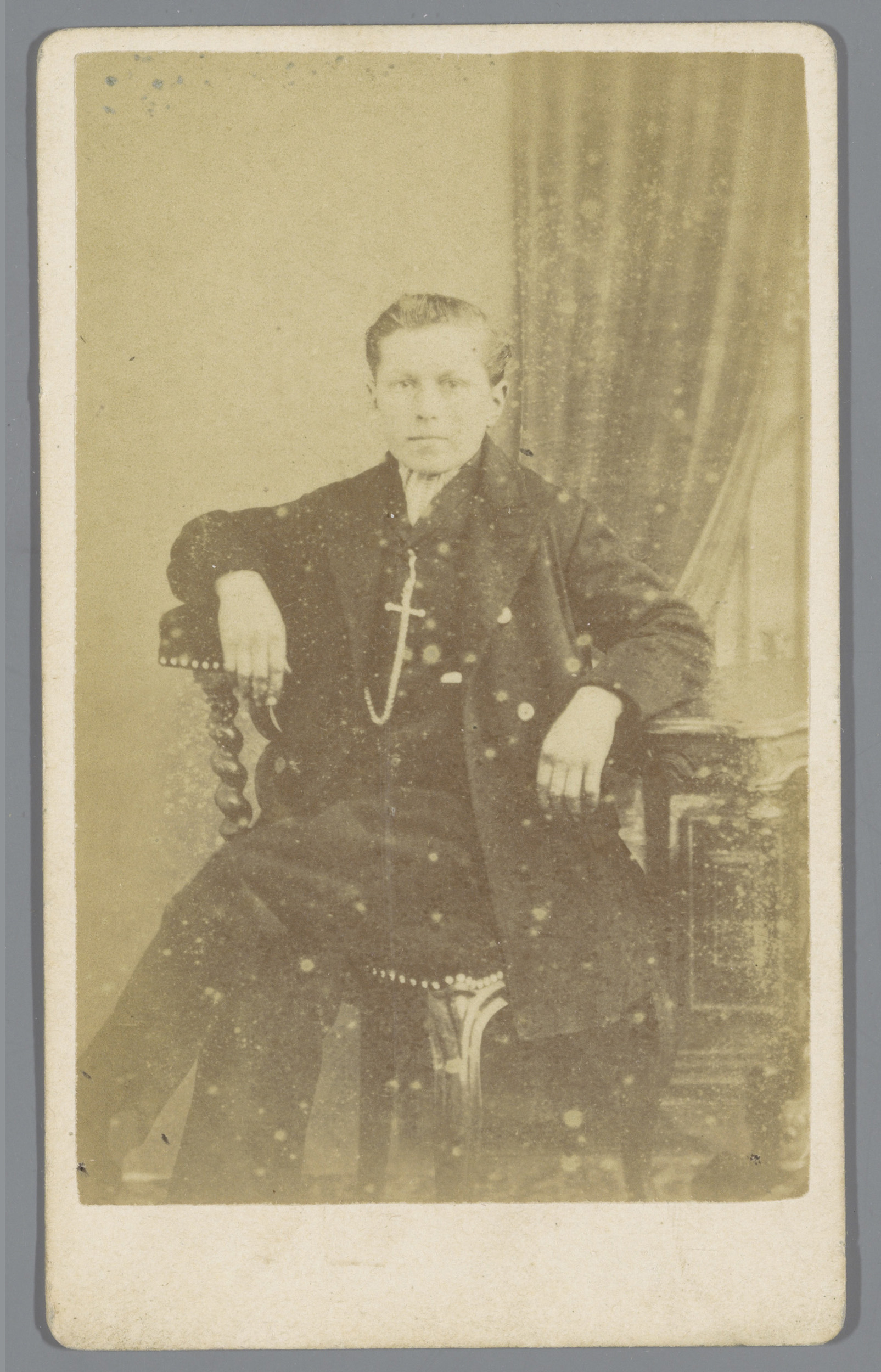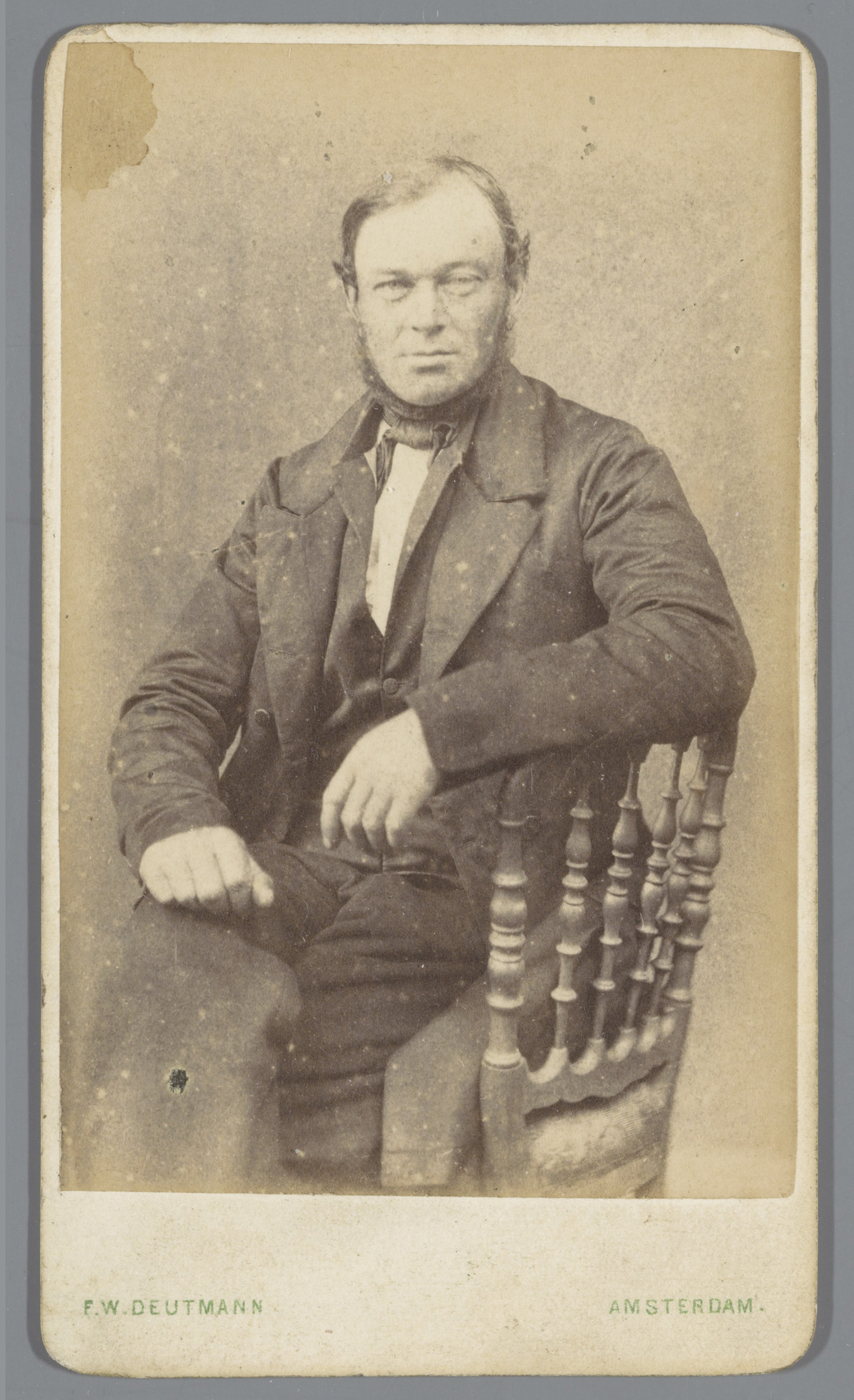 Portret van een onbekende man naast een stoel