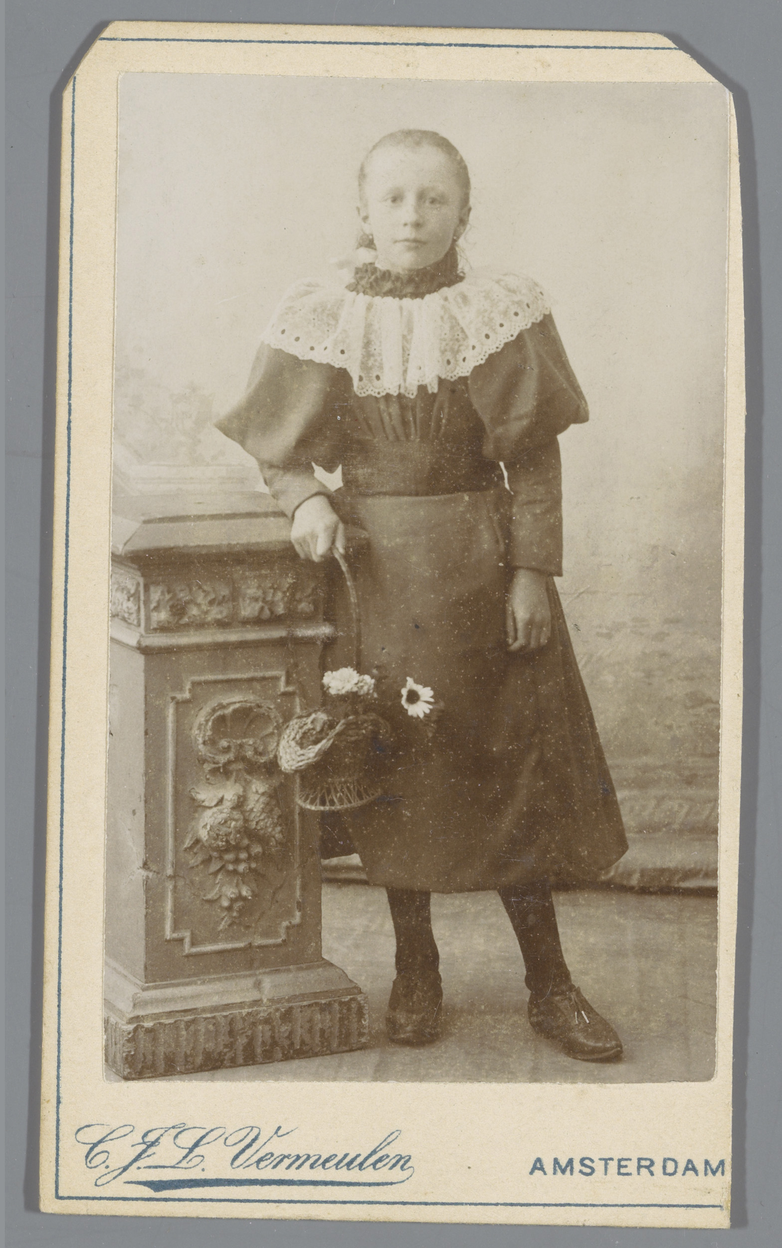 Portret van een onbekend meisje met een rieten mand ...