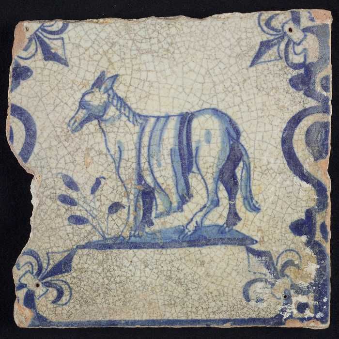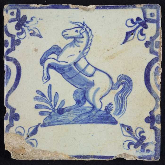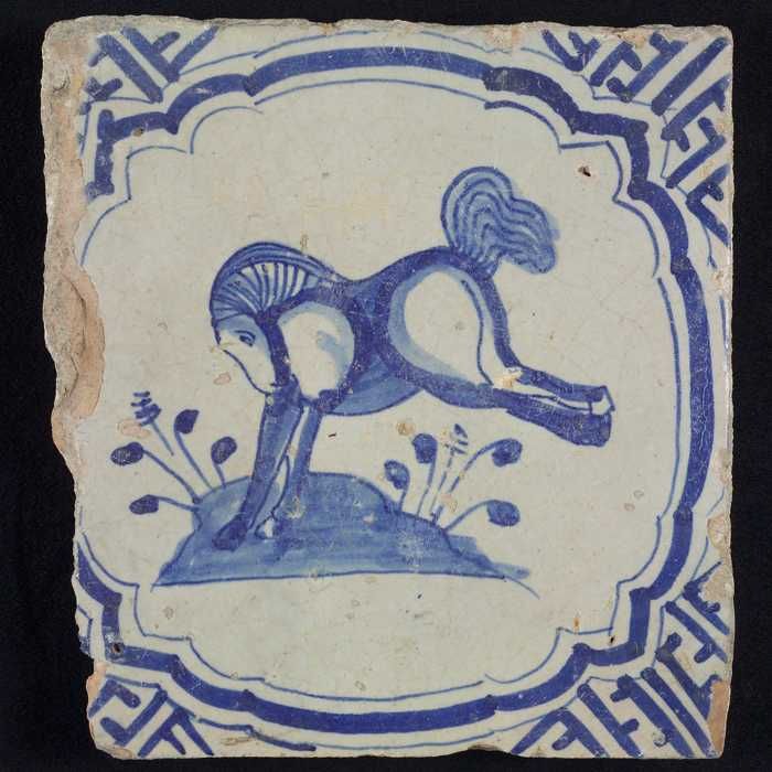 Dierentegel, staand paard tussen balusters, hoekmoti...
