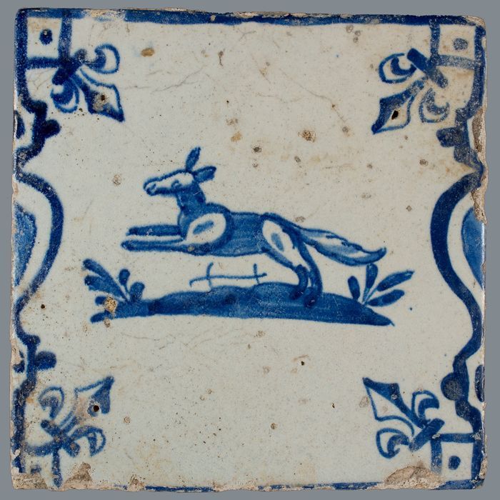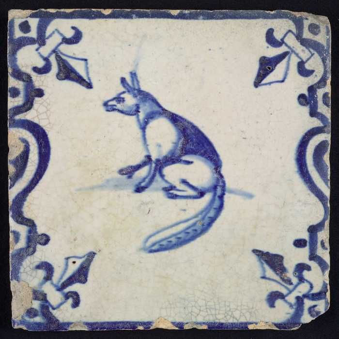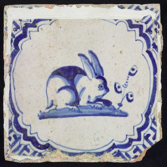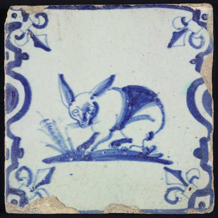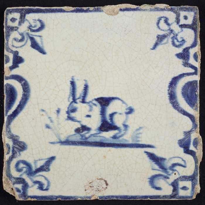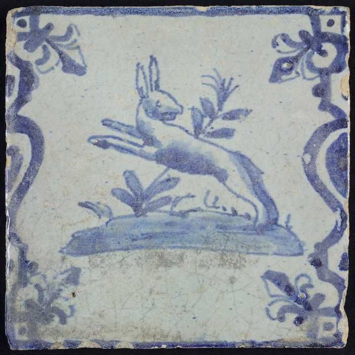 Dierentegel, haas tussen balusters, hoekmotief frans...