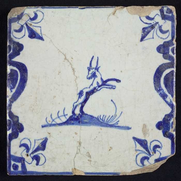 Dierentegel, springende bok tussen balusters, hoekmo...