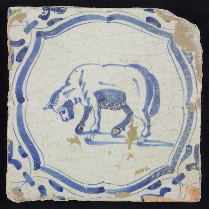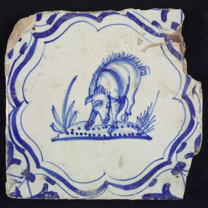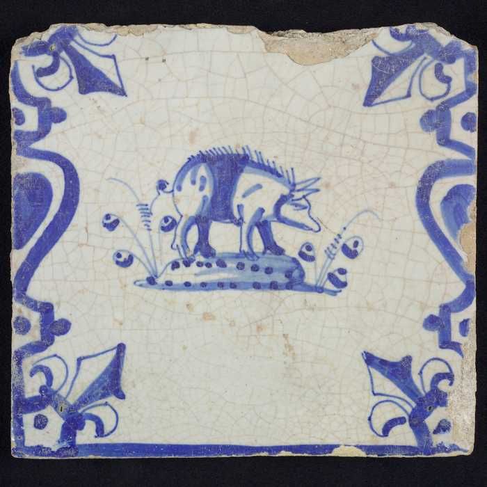 Dierentegel, staand zwijn, in accolades, hoekmotief ...