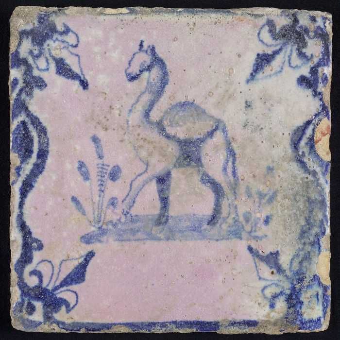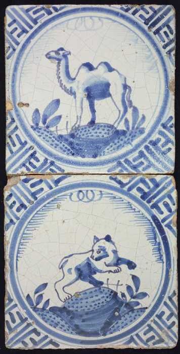 Dierentegel, staande dromedaris, tussen balusters, h...