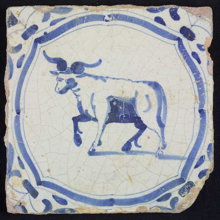 Dierentegel, lopende os, hoekmotief vleugelblad
