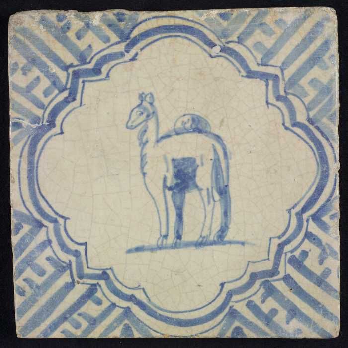 Dierentegel, staande dromedaris, in accolades, hoekm...