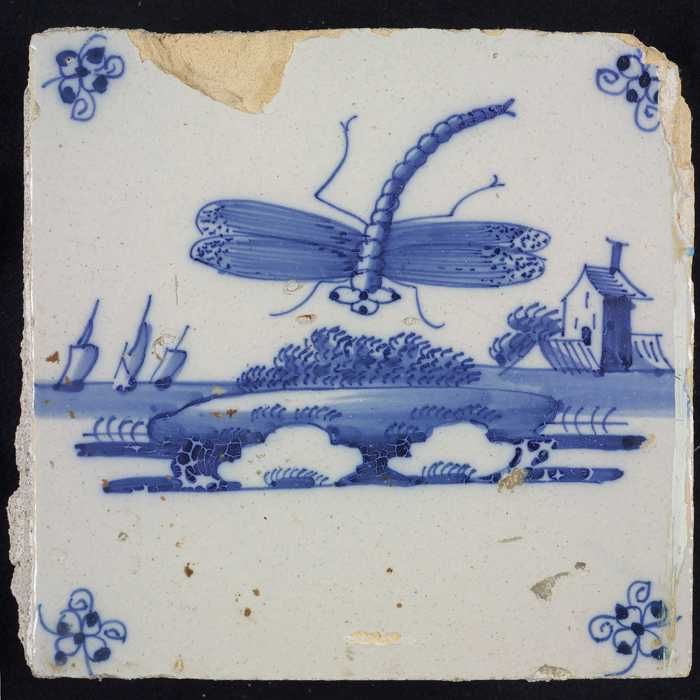 Dierentegel, vliegende libelle met toren, hoekmotief...