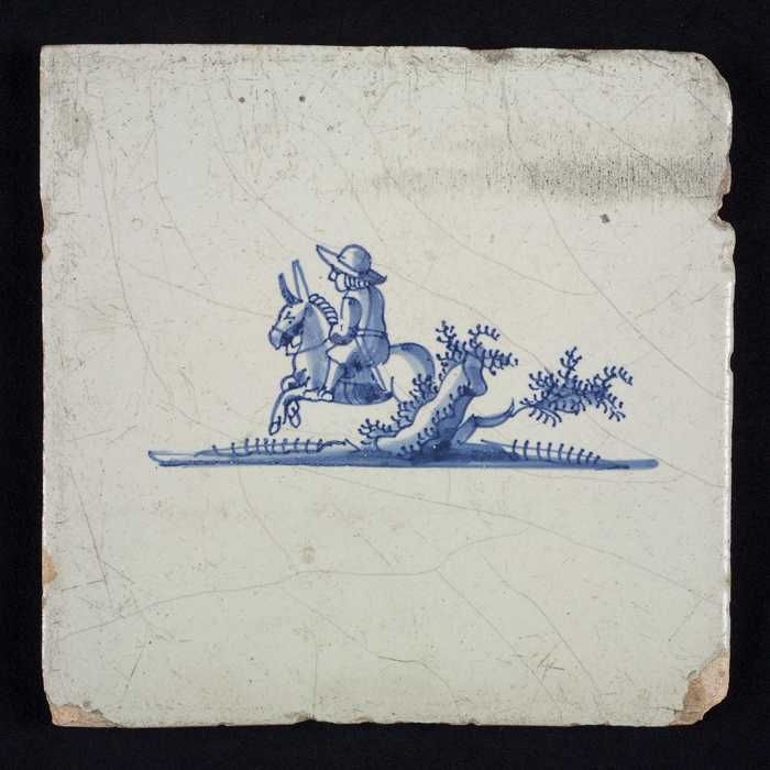 Tafereeltegel, blauw, landschap met ruiter, geen hoe...