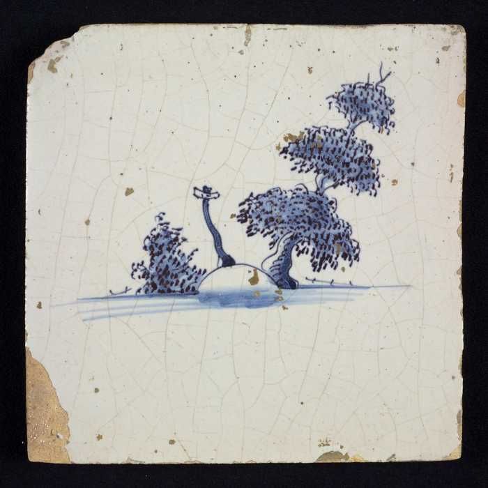 Tafereeltegel, blauw, grote boom en twee figuren, ge...