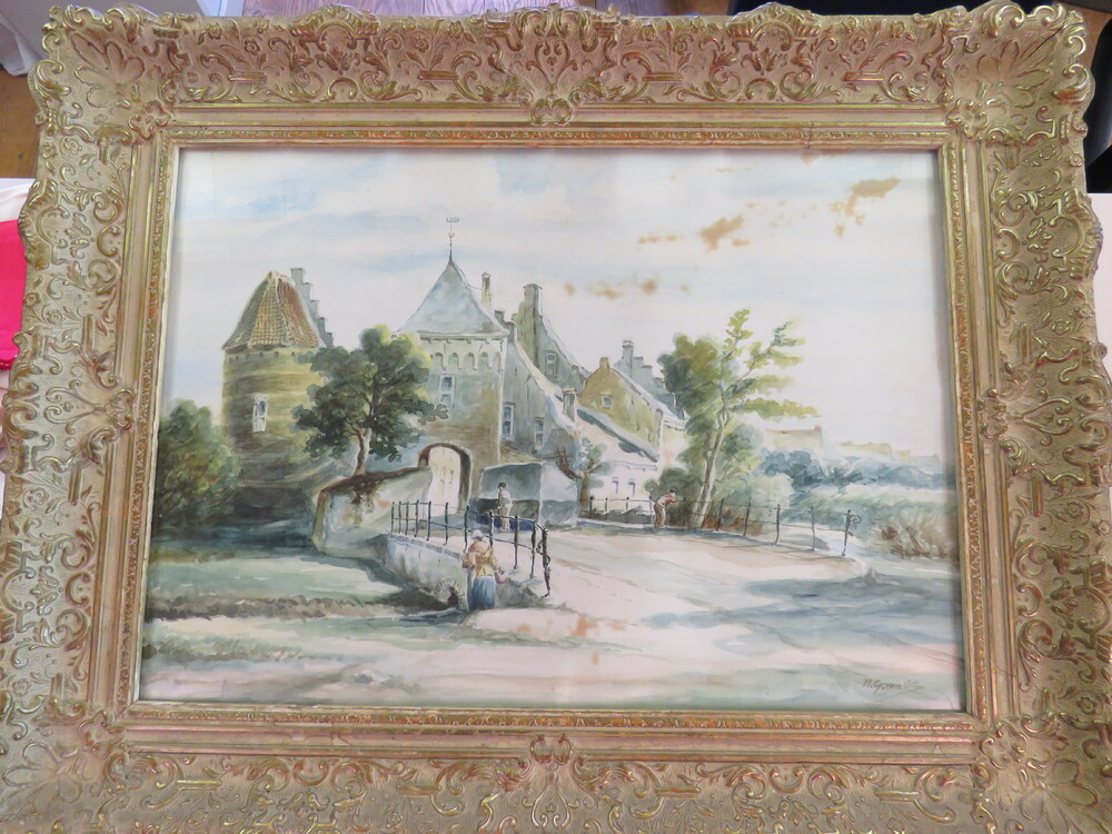 aquarel in lijst, voorstellende de Slot- of Fabrieks...