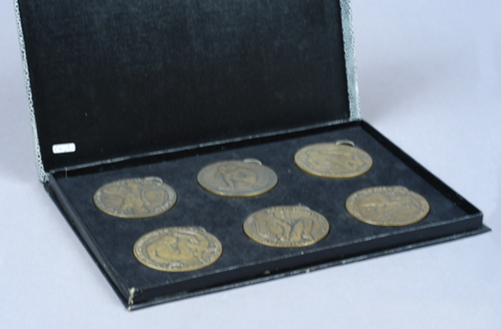 6 bronskleurig metalen herinneringspenningen, uitger...
