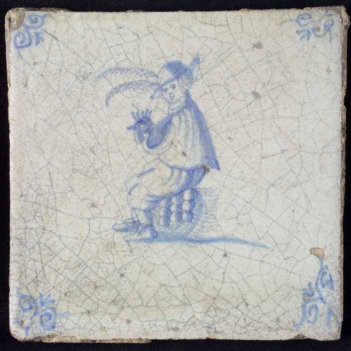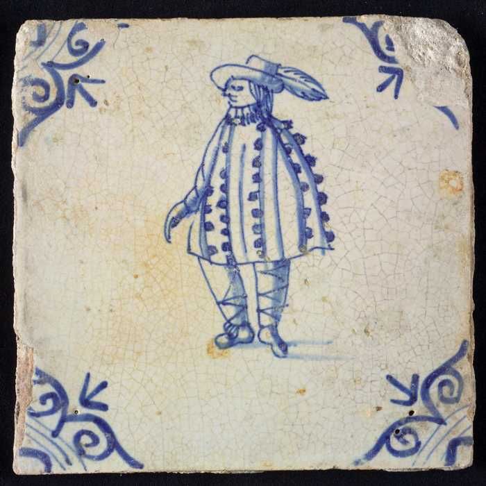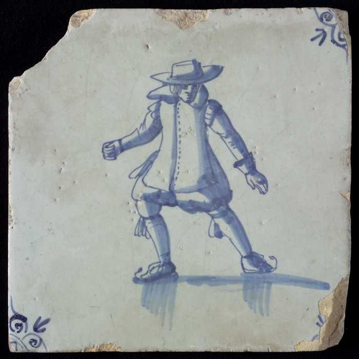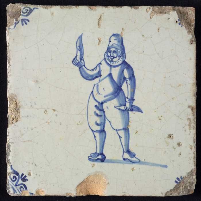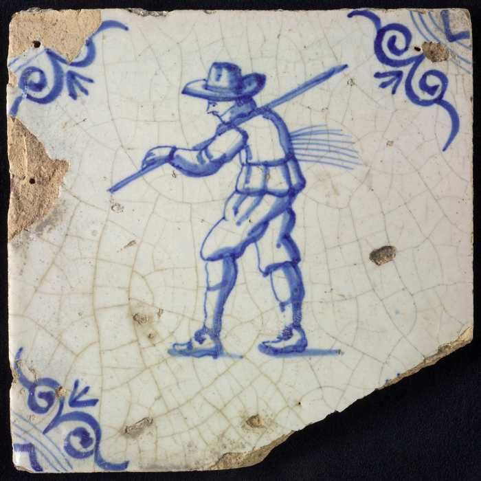 Figuurtegel, blauw, soldaat, piekenier, hoekmotief o...