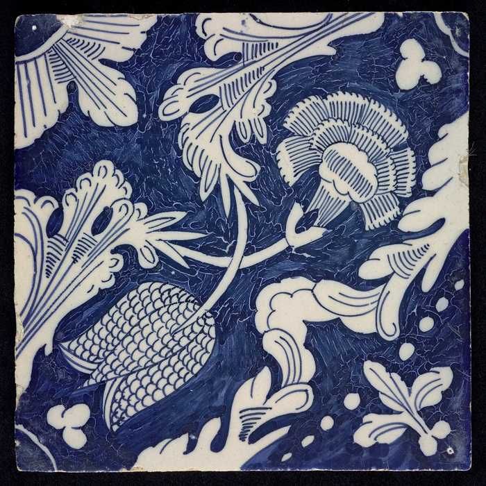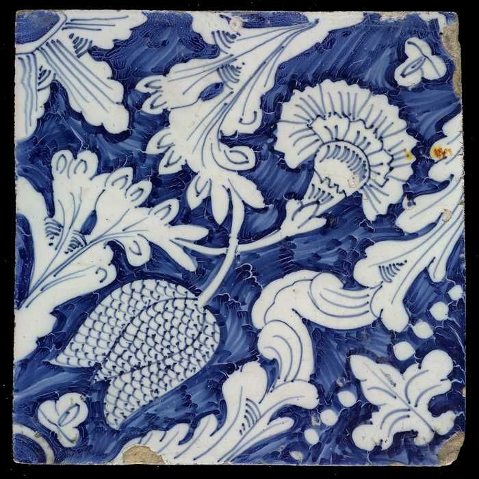 Ornamenttegel, kievitsbloem en anjer, hoekmotief kwa...