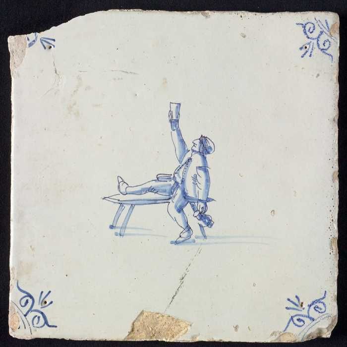 Figuurtegel, man drinkend uit een kruik, hoekmotief ...