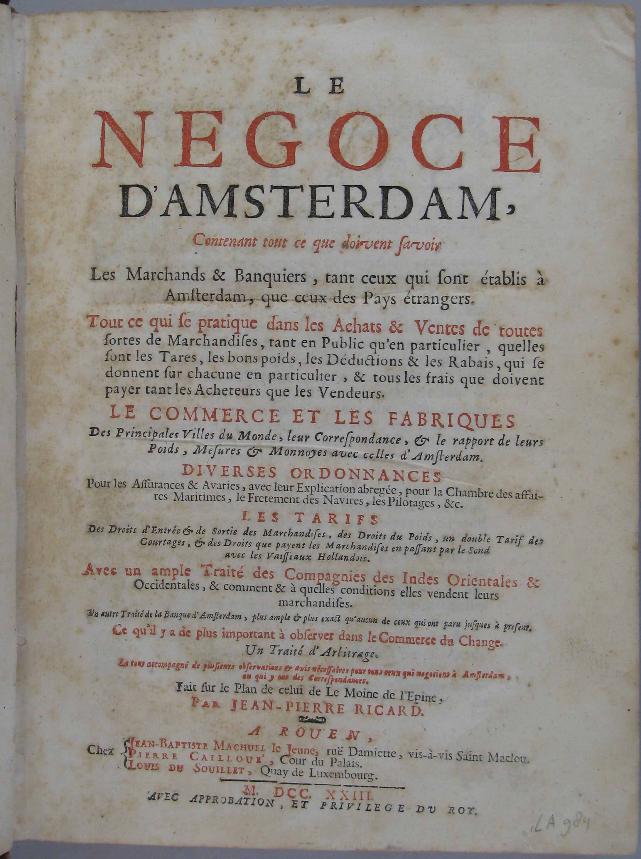 Le negoce d'Amsterdam, contenant tout ce que doivent...