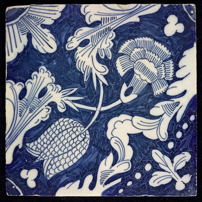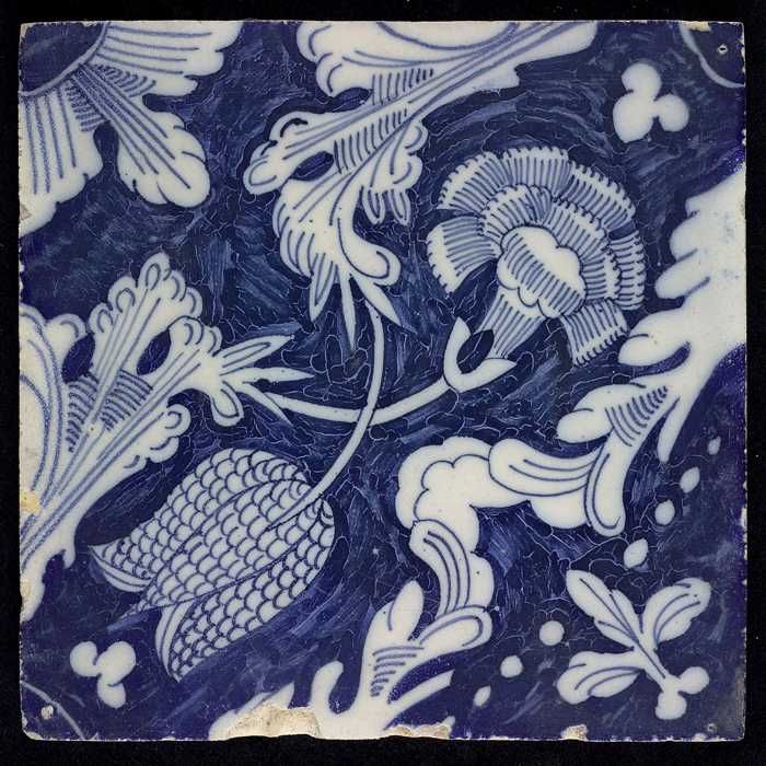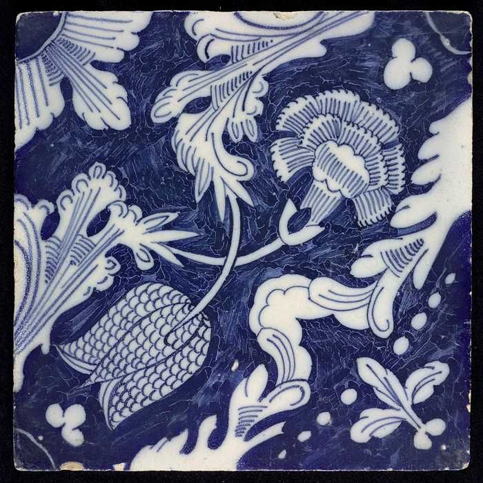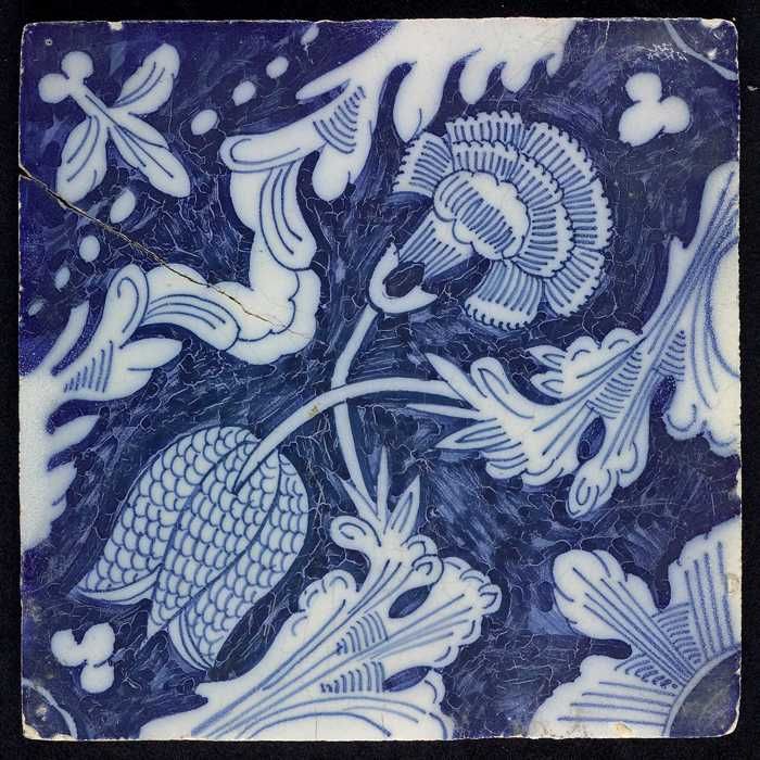 Ornamenttegel met kievitsbloem en anjer, hoekmotief ...
