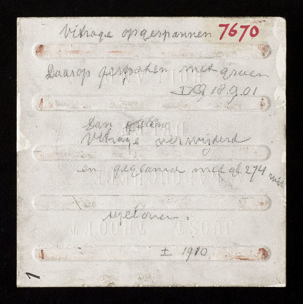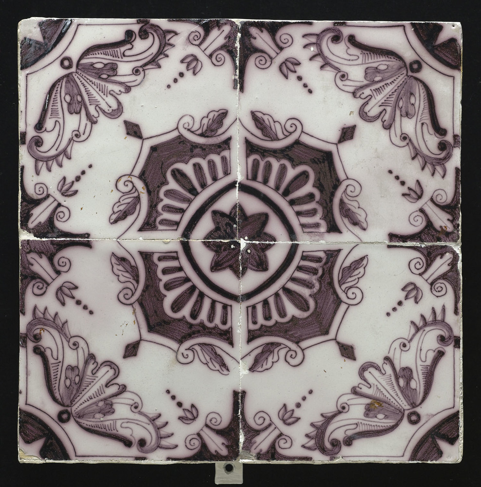 Tegel in onderglazuur, met voorstelling: ornament me...