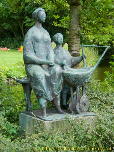 Moeder met kind en poppenwagen