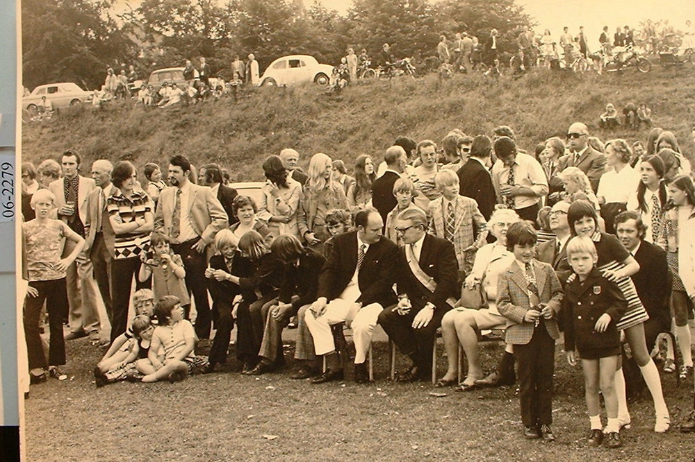 Zwart-wit foto van een familie bij een bruiloft ca. ...